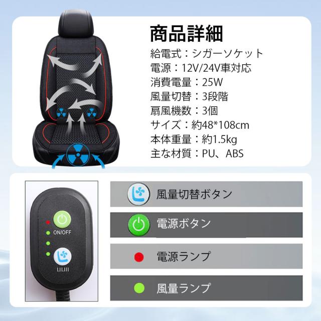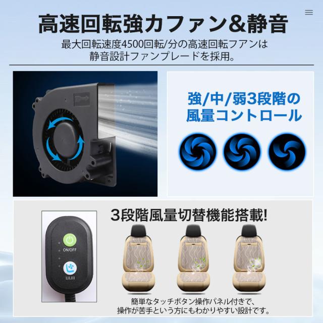 シートクーラー クールシート 車用 カーシート 三段階風量調節 静音 12V 24V対応 自動車 トラック 送風 冷却 強力ファン