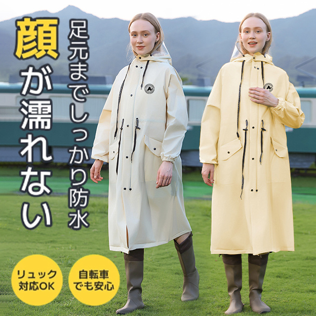 送料無料 レインコート 自転車 リュック対応 レディース メンズ ポンチョ ロング丈 カッパ おしゃれ ママ レインウェア かわいい 防水 軽い 雨具 通学用 雨の日 自転車用 通勤 通学 顔が濡れない 撥水 蒸れない 送迎 保育園 中学生 高校生