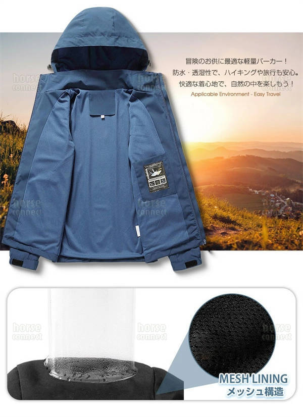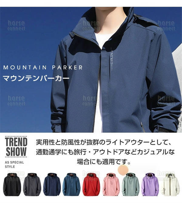 ウインドブレーカー メンズ マウンテンパーカー 秋 アウター ウインドブレーカー レディース 春服 大きいサイズ 男女兼用 無地 撥水耐汚 防水 防風 薄手 軽量 ジャンパー ライトジャケット ブルゾン 帽子取り アウトドア 通勤通学 旅行 登山 春用