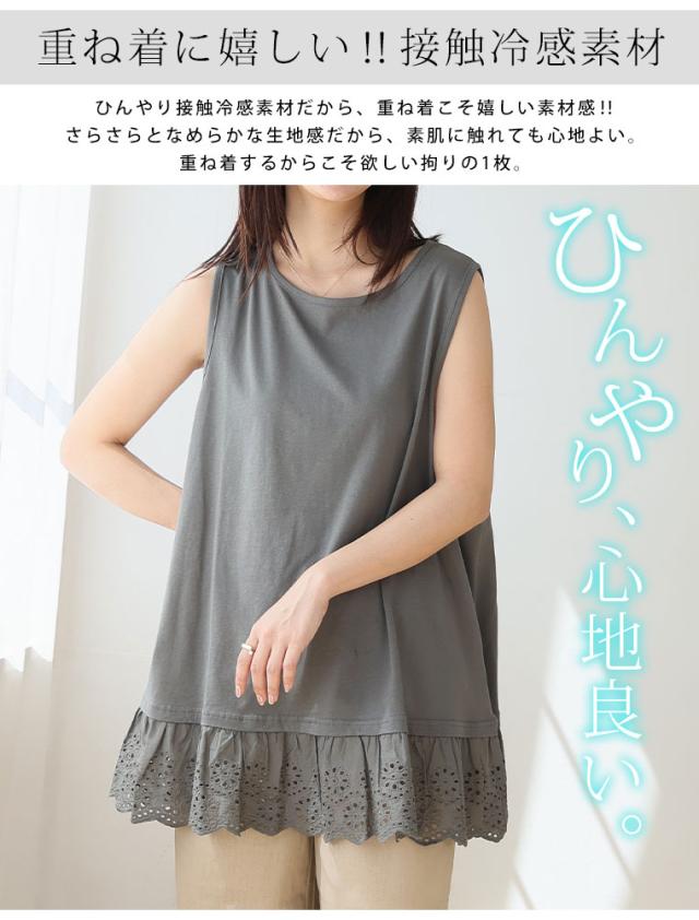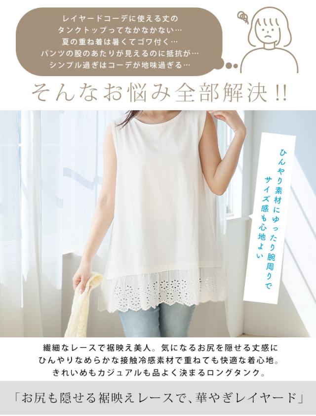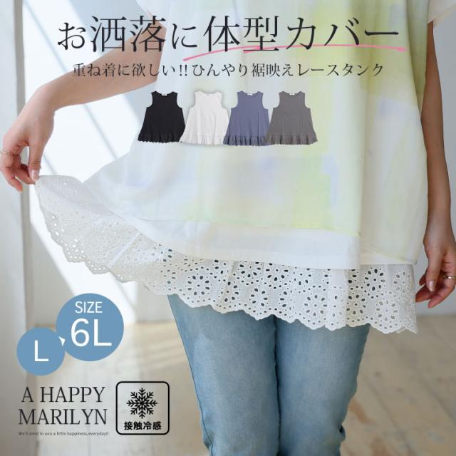 新作 大きいサイズ レディース インナー | 重ね着に欲しい! 接触冷感 裾刺繍 レース タンクトップ [862082] LL 3L 4L 5L 6L