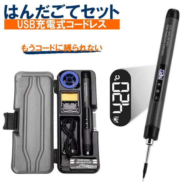 充電式コードレス はんだごて セット USB Type-C 急速加熱 5段階温度調整 ディスプレイ搭載 LEDライト付き こて先 はんだこて 半田ごて DIY 修理 電子工作 初心者OK 送料無料