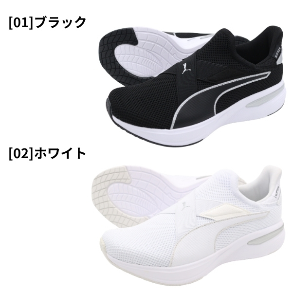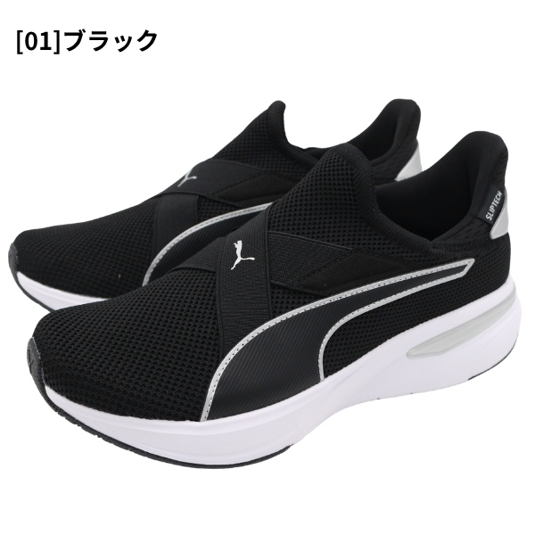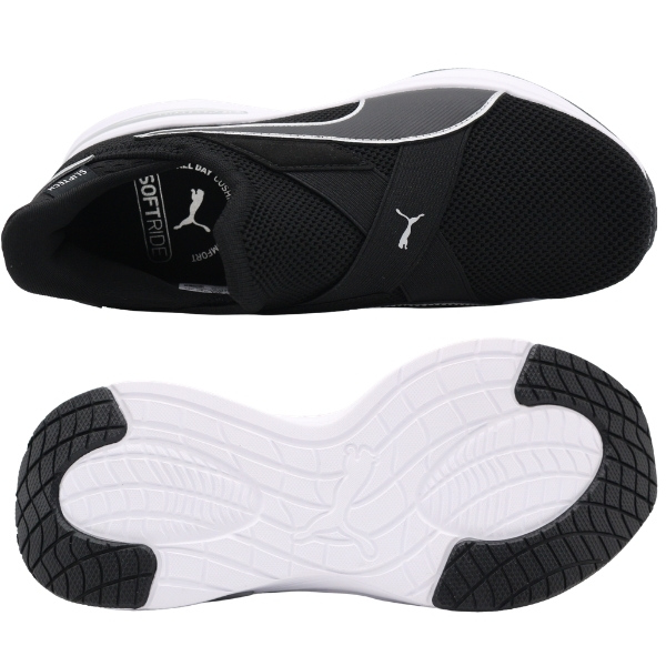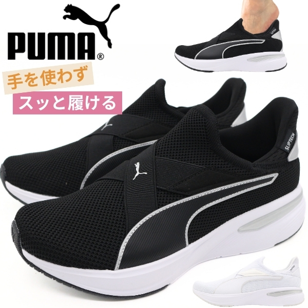 プーマ PUMA スニーカー レディース SOFTRIDE チャーム EASE IN 312247 ソフトライド スリッポン 黒 白 ブラック ホワイト ランニングシューズ ウォーキング 紐なし 履きやすい 靴 軽量 痛くない 疲れにくい 通勤 通学 カジュアル デイリー 運動靴