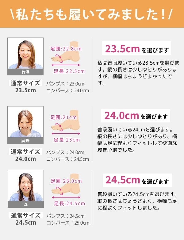 取り扱いサイズ:22.5cm 23cm 23.5cm 24cm 24.5cm 25cm
