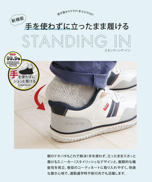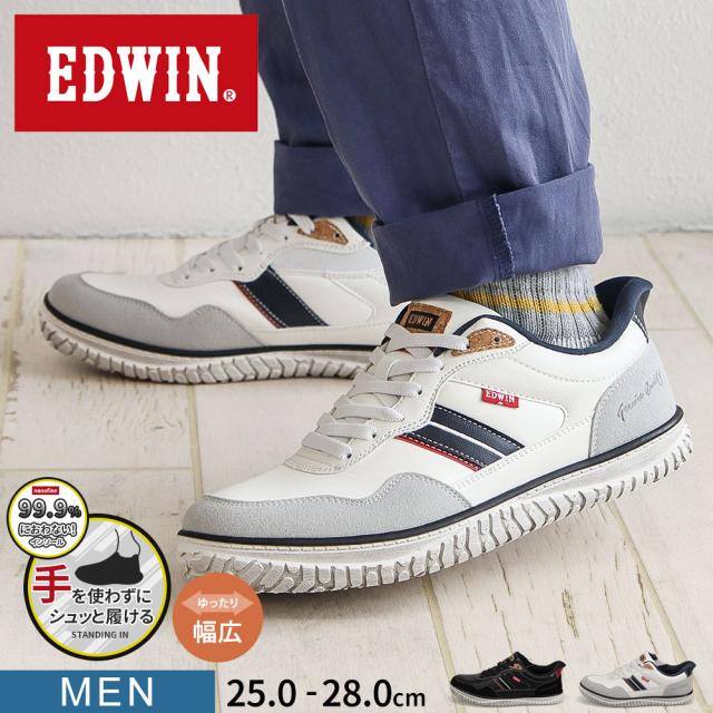 エドウィン スタンディングイン スニーカー スリッポン メンズ 防臭 制菌 耐滑 幅広 ハンズフリー シューズ 男性 メンズスニーカー 軽量 中学生 高校生 学生 通学 軽い 黒 ブラック 白 ホワイト ネイビー EDWIN EDW-7291