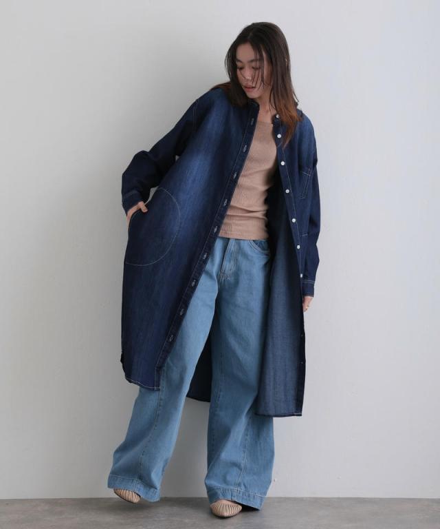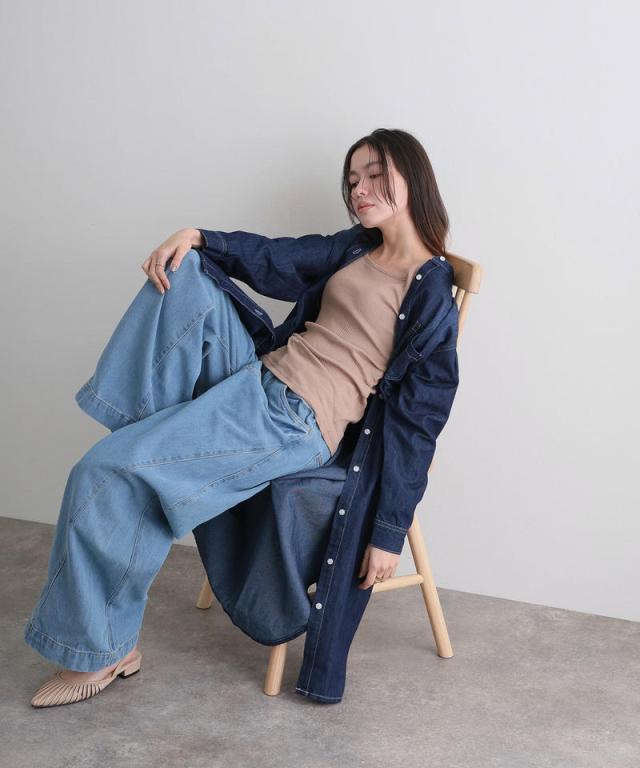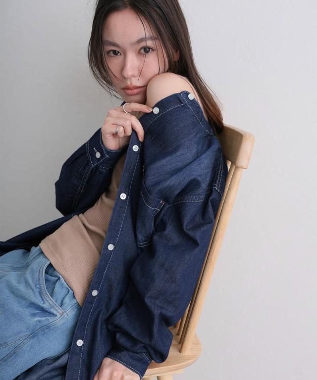 風合い豊かなデニムが、シンプルながらも印象的なスタイルに。