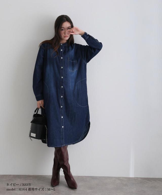ヴィンテージ加工デニムワンピース【621251326】10代・20代・30代・40代・50代・ドレスワンピ・フォーマルワンピ・パンツドレス・服装・ワンピース・ドレスカジュアル・ブランド・七分袖・長袖・ロング・膝丈・薄手・厚手・無地・刺繍・脚長効果・伸縮性・キレイめ・着やせ・体型カバー・スタイルアップ・レース・リボン・ドレープ・小さいサイズ・3Lや4L・かっこいい・かわいい・即日発送・送料無料・結婚式・婚活・披露宴・顔合わせ・発表会・演奏会・二次会・同窓会・お呼ばれ・食事会・謝恩会・親族・七五三・お宮参り・冠婚葬祭・弔事・女子会・韓国・デート・入学式・卒業式・入園式・卒園式・ママ・ピアノ・マタニティー・セレモニー・セレブ・パーティー