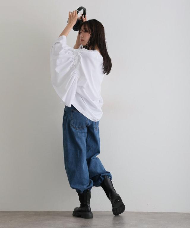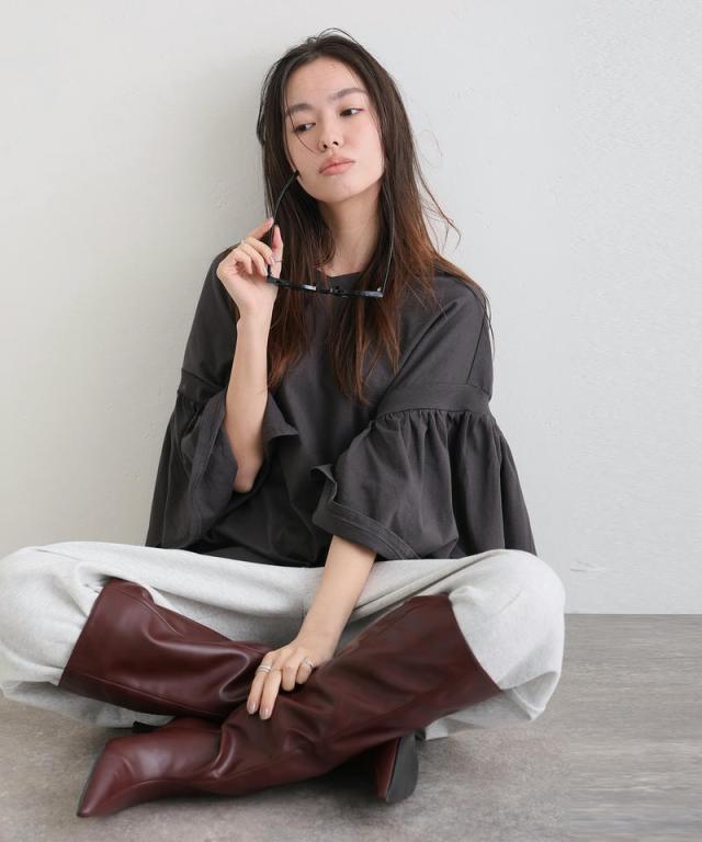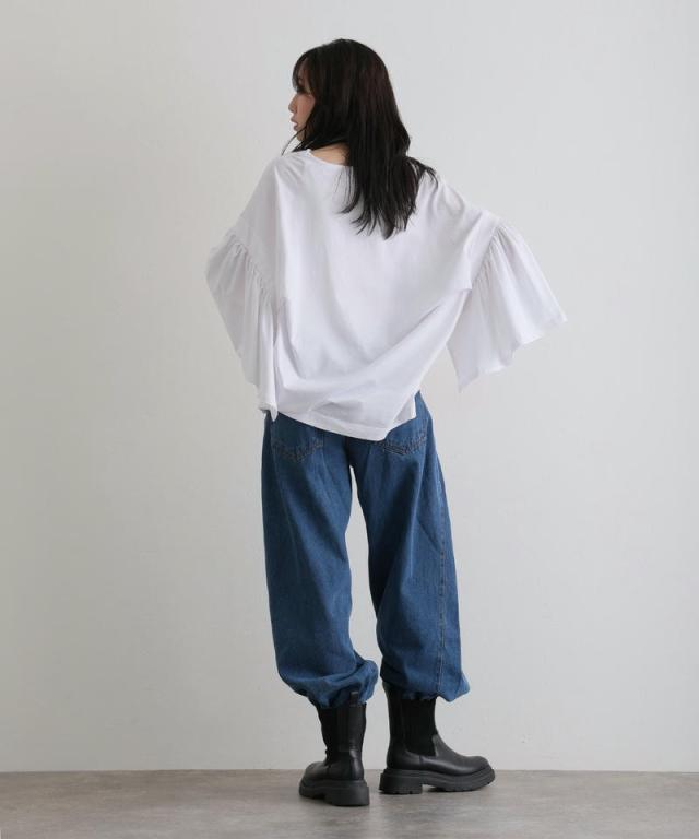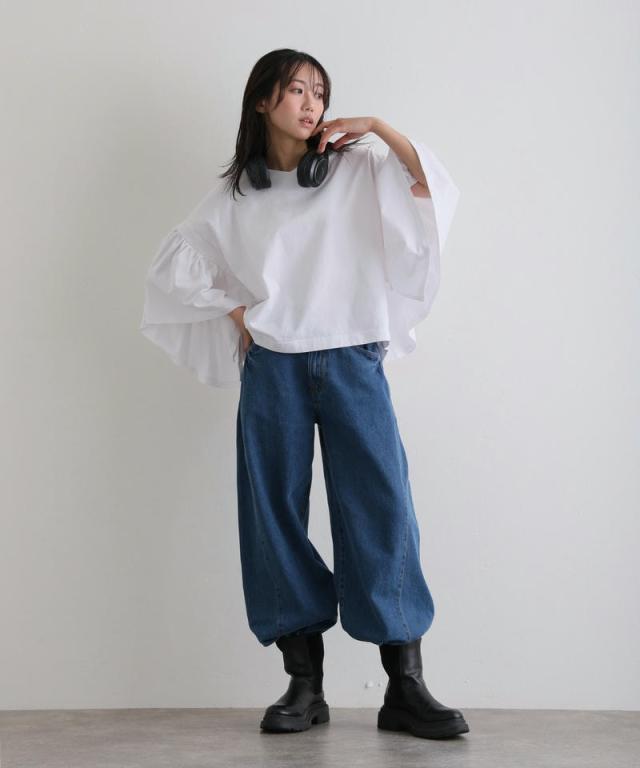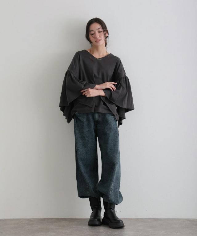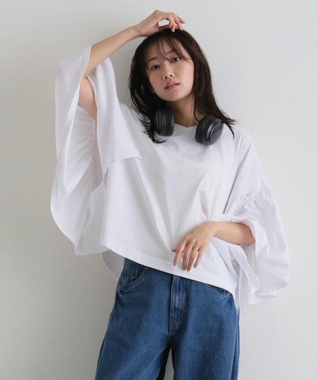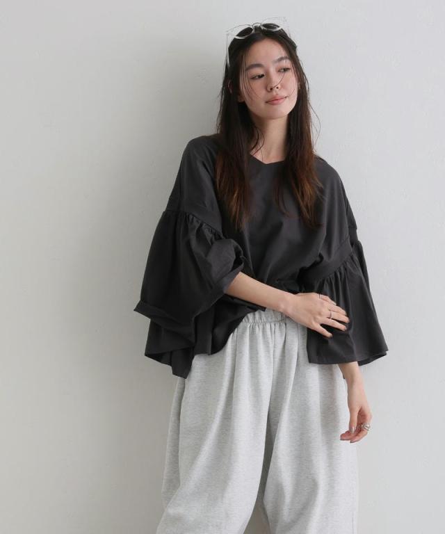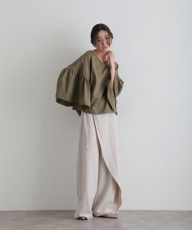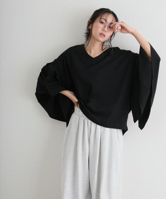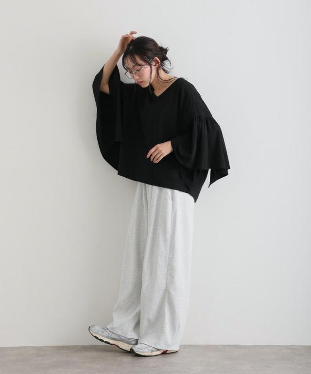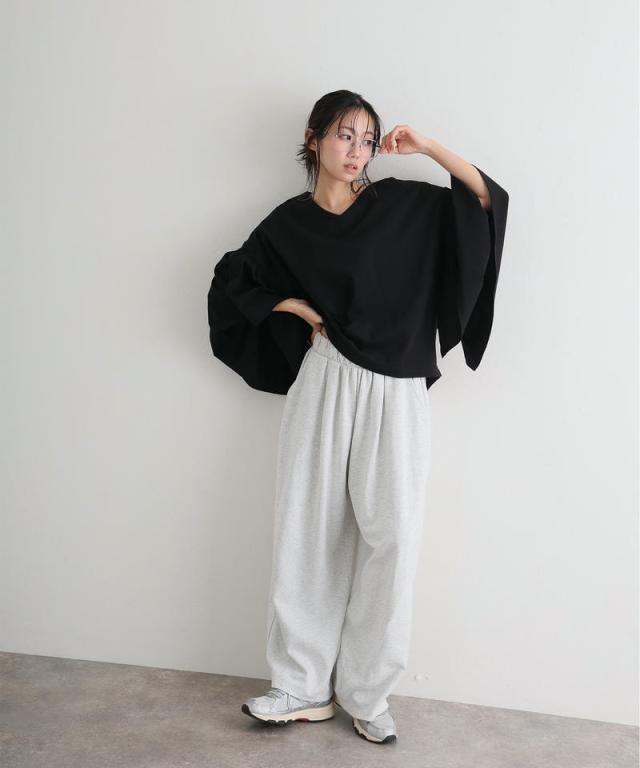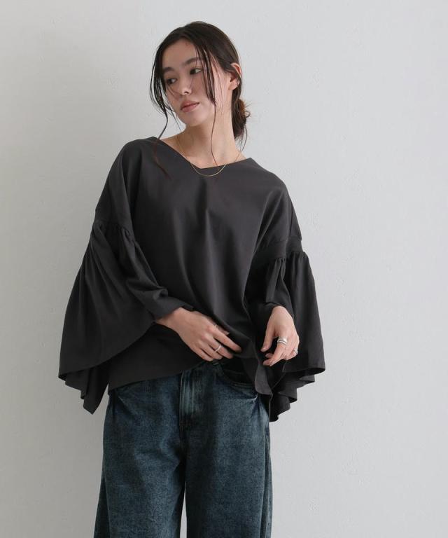 ゆったりとしたドロップショルダーと広がる袖が、自然な抜け感を演出。