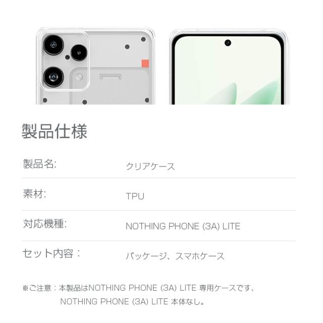 NOTHING Phone (3a) Lite A001T 楽天モバイル スマホ保護ケース スマホカバー ソフトケース ナッシング フォン スリーエー ライト TPU製ケース 高透明感 疎油撥水 衝撃吸収 薄型 軽量 マイクロドット加工 液晶保護 カメラ保護 指紋防止 スクラッチ防止