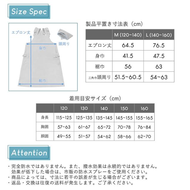 商品カテゴリ : エプロン 三角巾 セット ワークエプロン 撥水 ナイロン 子ども 女の子 フリル キッズ 子供 子供服 幼稚園 小学生