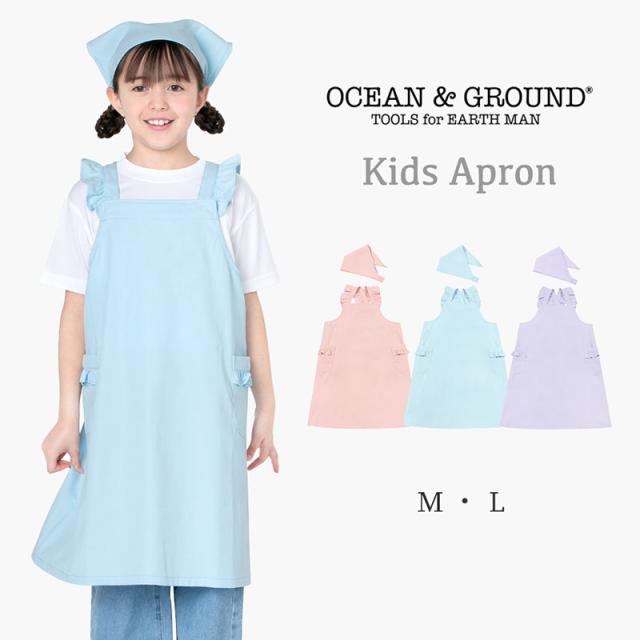 オーシャンアンドグラウンド 撥水 エプロン 三角巾 セット キッズ 子供 女の子 無地 ポケット 160 150 《レビュー記入でメール便無料》 140 130 120 調理実習 家庭科 料理 クッキング 掃除 ガーデニング 小学生 幼稚園 おしゃれ フリル : Ocean & Ground 4618002