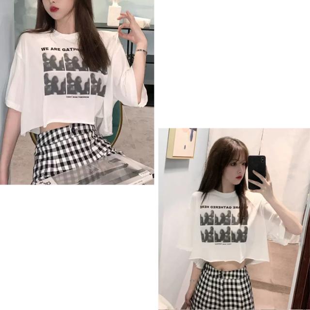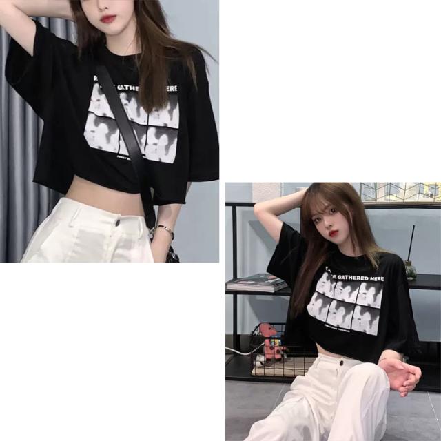 全品送料無料一部除く モノクロフォトプリント ショート丈 オーバーTシャツ ma 【即納】トップス 半袖 半袖TシャツTシャツ チビT ミニT ショート丈 ミニ丈 コンパクト へそ出し レディース 韓国 Y2Kファッション 韓国ストリート 流行り トレンド かわいい
