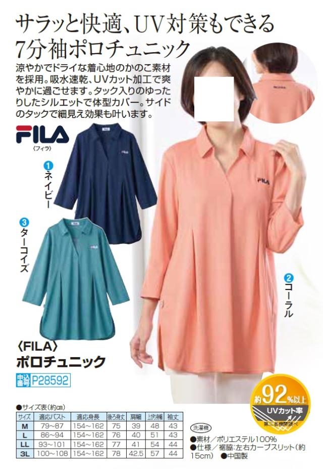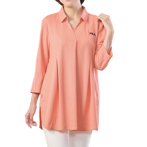 フィラ ポロチュニック 全3色 チュニック ポロシャツ 七分袖 UVカット率約92% レディース 婦人服 ミセス シニア 女性 大人 ネイビー ピンク グリーン 無地 ロゴ FILA シンプル シニアファッション 40代 50代 60代 70代 80代 90代 母の日 お母さん 春夏 dz p28592