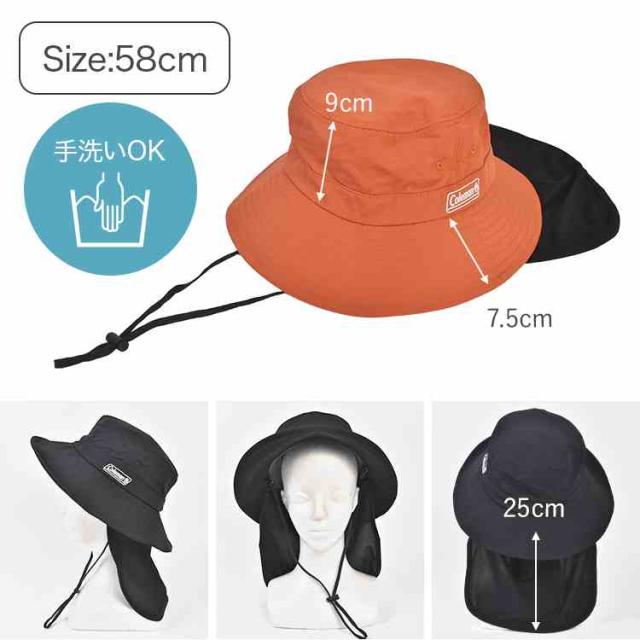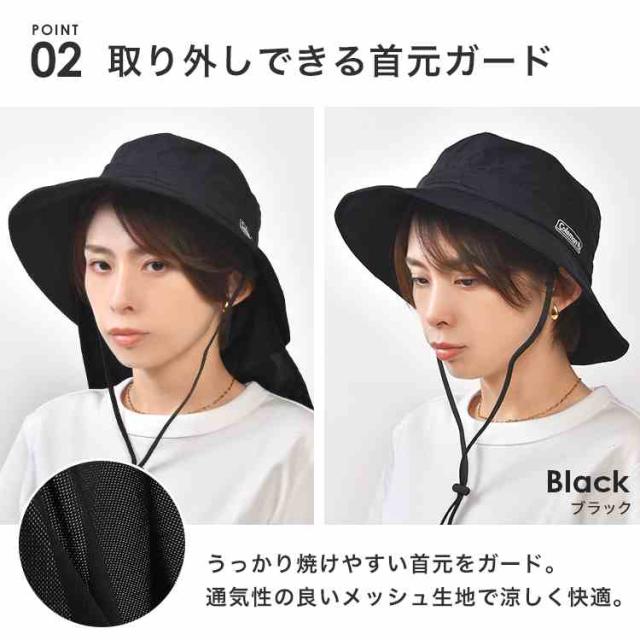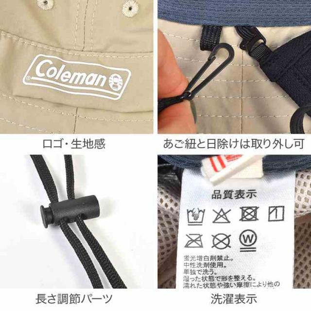 アドベンチャーハット Coleman コールマン メンズ レディース UVカット 帽子 遮光 99.9% 紫外線 熱中症 対策 サファリハット 撥水 接触冷感 吸汗速乾 メッシュ 通気性 日よけ 首ガード付き 取り外し可能 あご紐付き アウトドア キャンプ フェス 釣り 登山 夏用 58cm 大きめ
