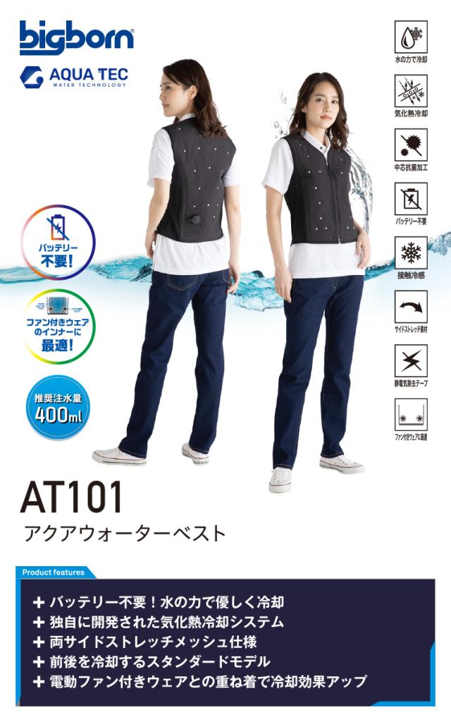 AQUA TEC アクアウォーターベスト AT101 バッテリー不要 接触冷感 中芯抗菌加工 春夏 SDGs 作業服 作業着 熱中症対策 bigborn ビッグボーン 冷却ベスト