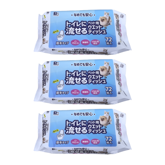 ※ペット用ウェットティッシュ 流せる 厚手 大判 無香料 除菌 3袋セット