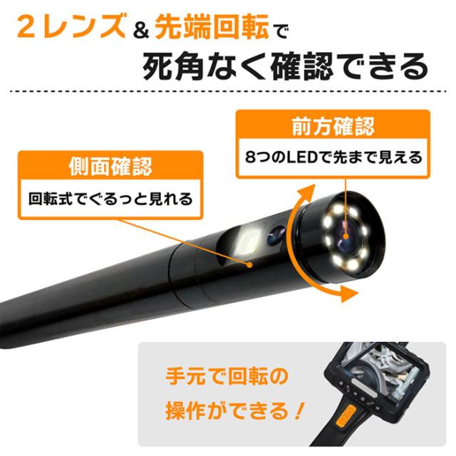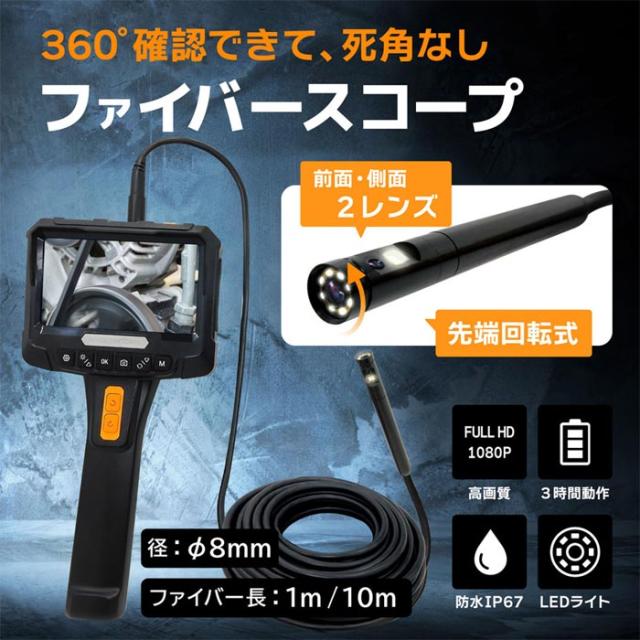FIB-LCAM-2L360-10M | 直径8mm ケーブル長10m 2レンズ360度回転フルHDファイバースコープカメラ【防水】【ファイバースコープ】【小型カメラ】
