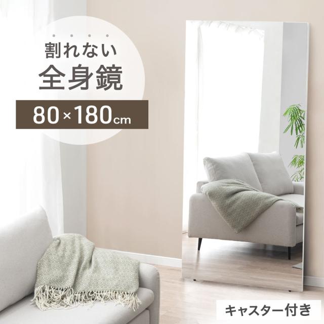 【正午〜P5%還元】 フレームレス 割れない 全身鏡 80×180 キャスター付き 超軽量 キャスター 姿見 割れない鏡 全身 割れないミラー 割れない 鏡 ミラー 全身鏡 全身ミラー 壁掛け 立て掛け フレーム無し 大型 フィルムミラー 【超大型】