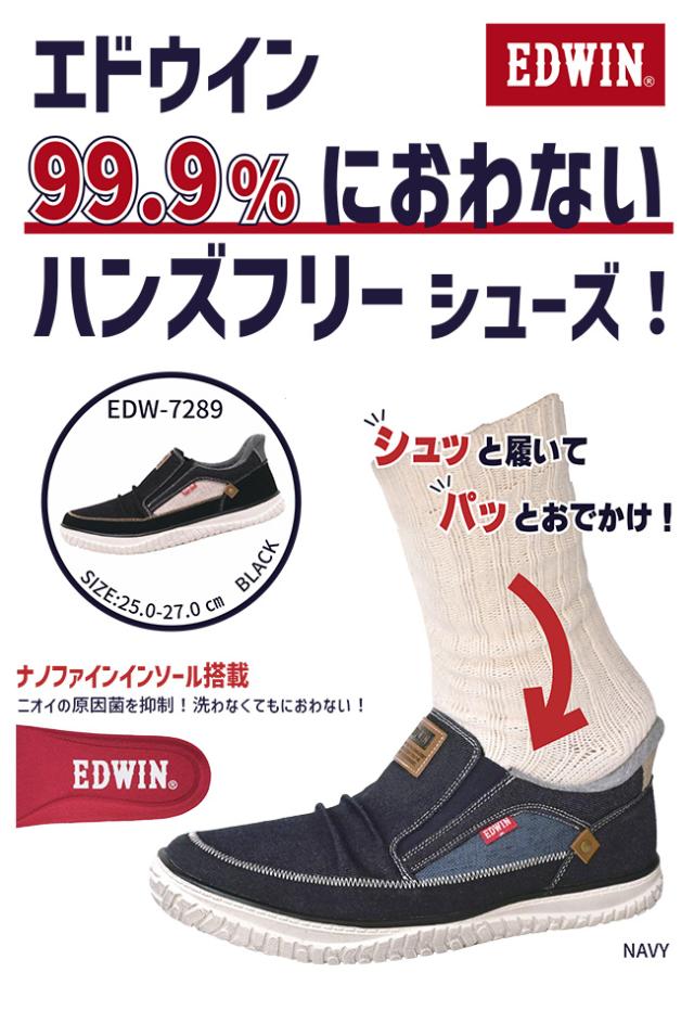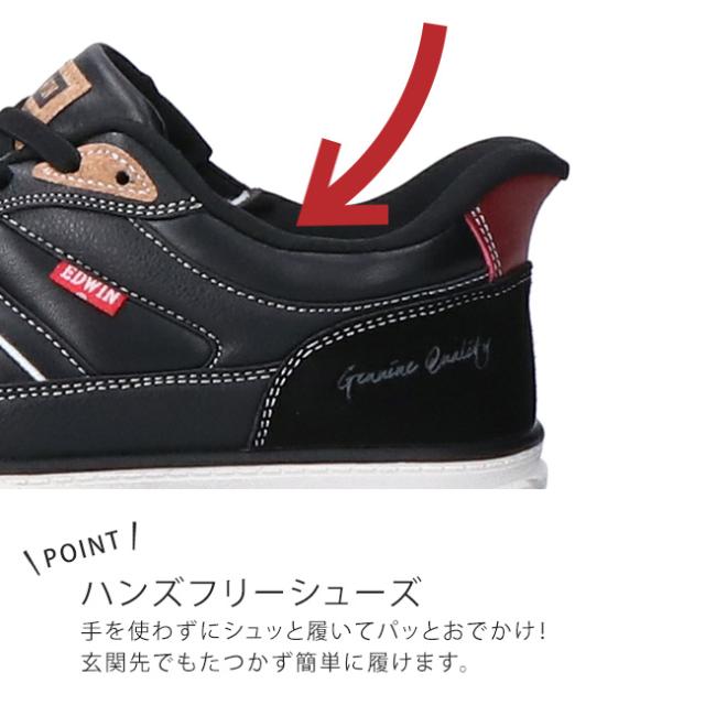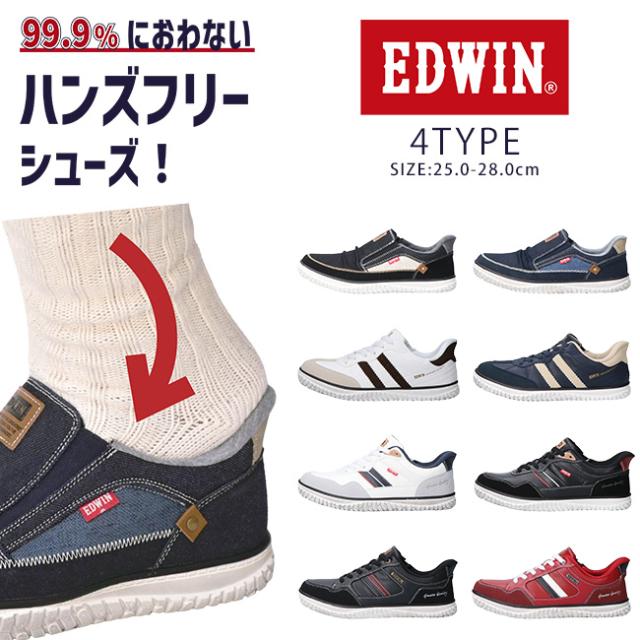 エドウィン ハンズフリーシューズ スニーカー スリッポン メンズ 手を使わずに履ける 履きやすい 歩きやすい 疲れにくい 滑りにくい 滑らない ゴム紐 軽量 幅広 耐滑 防滑 防臭 おしゃれ かっこいい 通勤 シューズ 靴