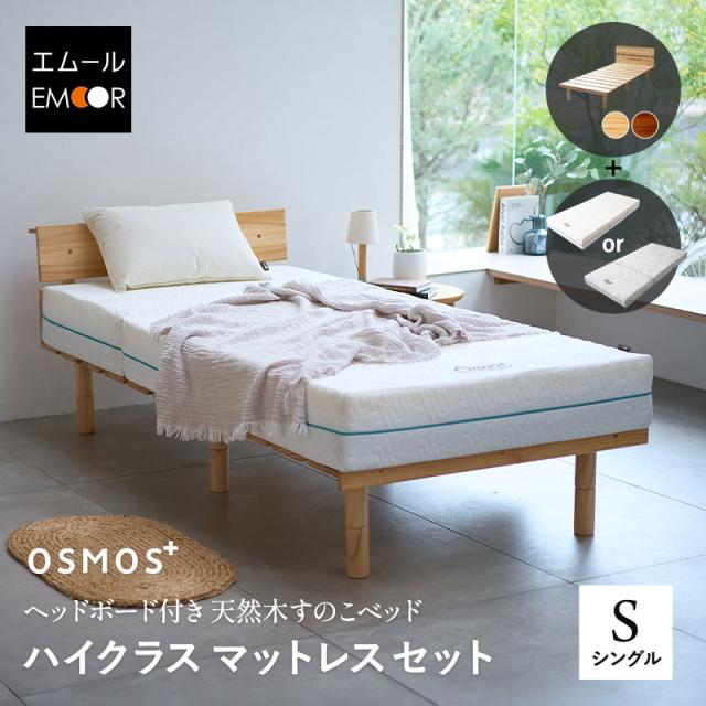 ヘッドボード付き 天然木すのこベッド & ハイクラスマットレス セット