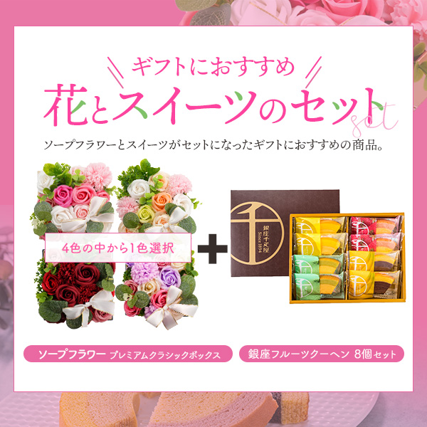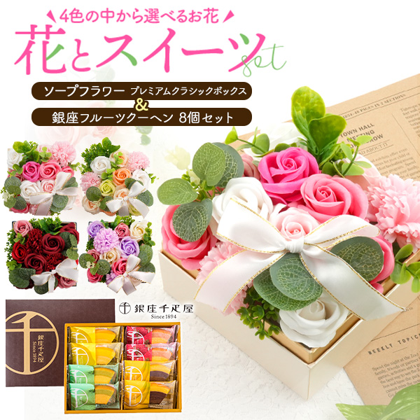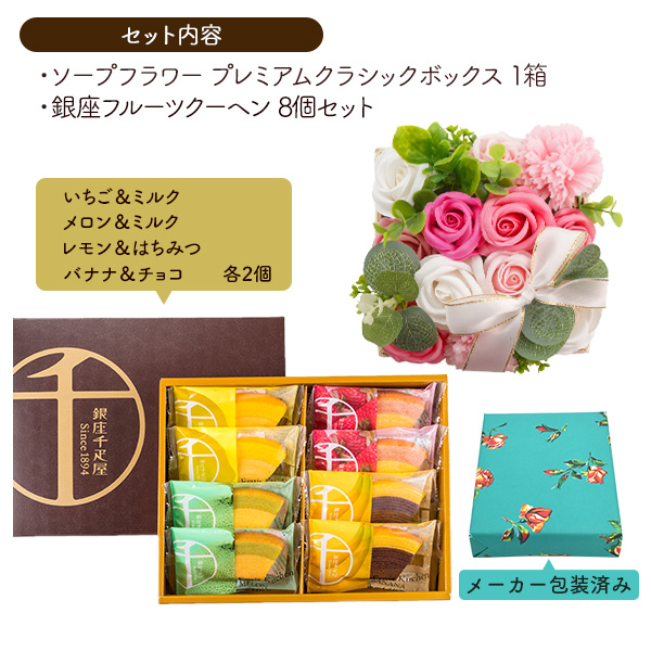 お菓子とお花ギフト 銀座千疋屋 銀座フルーツクーヘン 8個詰合せ ボックスフラワー 誕生日 結婚祝 内祝 御祝 退職 転職 送別 御祝 贈り物 花とスイーツ ギフトセット お菓子 お花セット 観賞用 花 ソープフラワー お菓子セット お花石鹸 枯れない 花 プレゼント