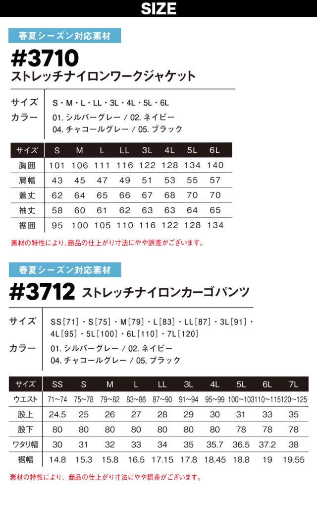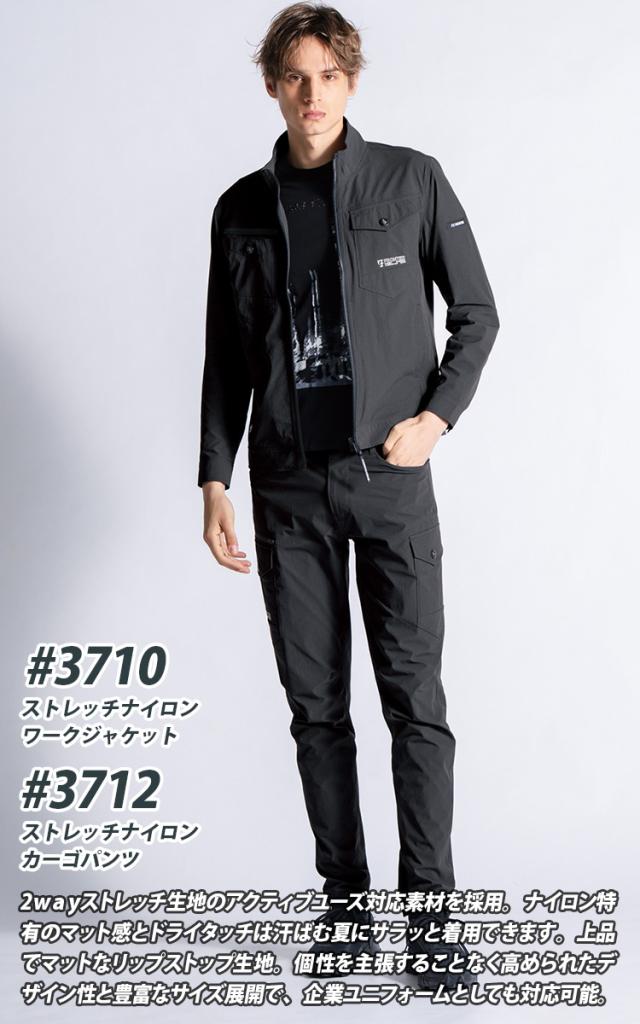 アイズフロンティア ストレッチナイロンワークジャケット カーゴパンツ 上下セット 3710-3712 2026年新商品 春夏シーズン対応 ドライタッチ メンズ 作業着 スポーツ アウトドア 2WAYストレッチ ユニフォーム 作業服 作業ズボン