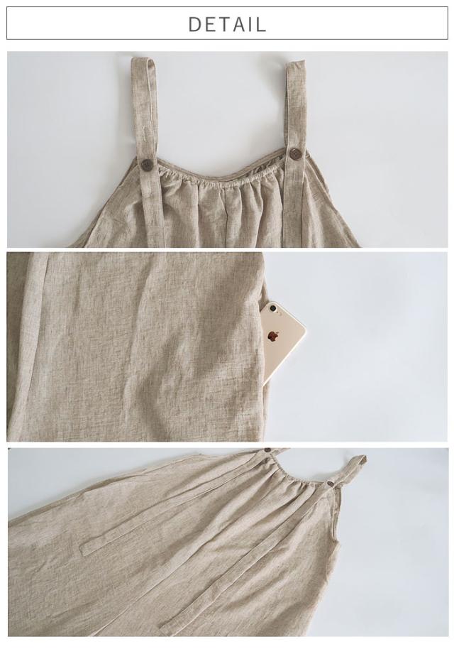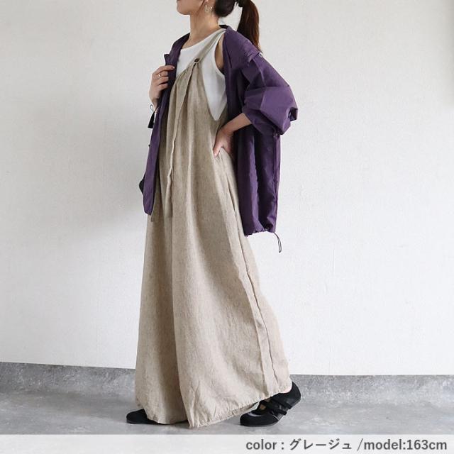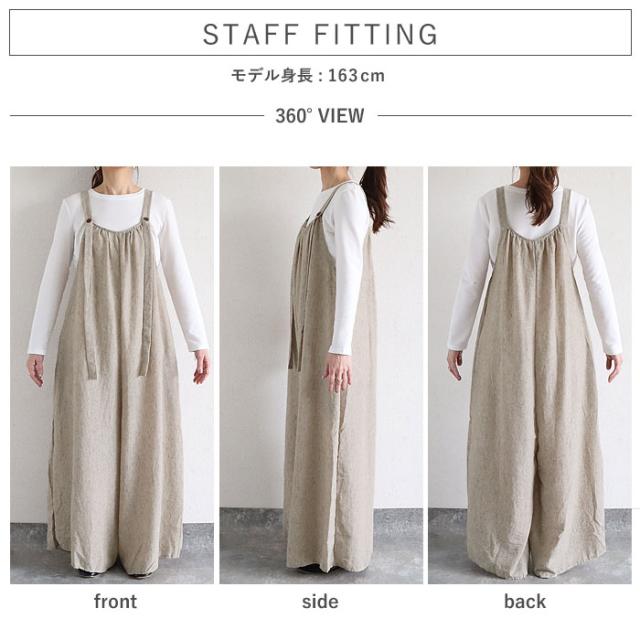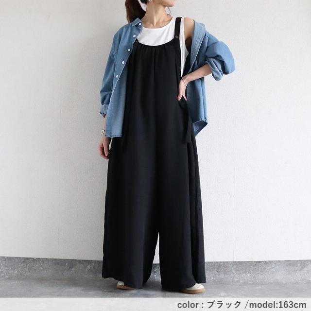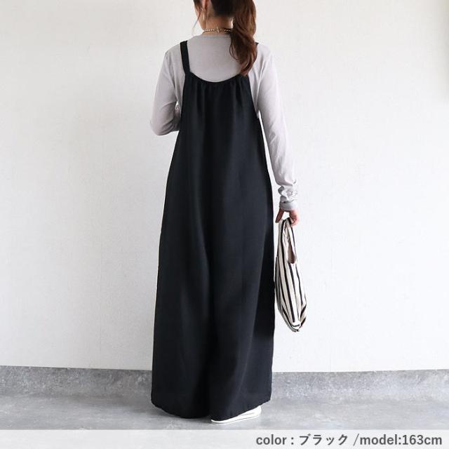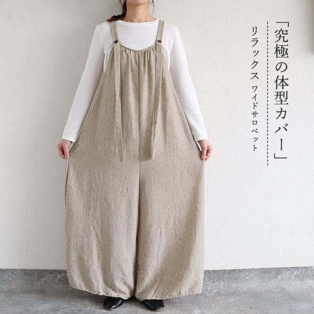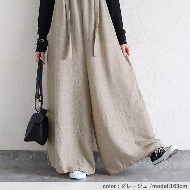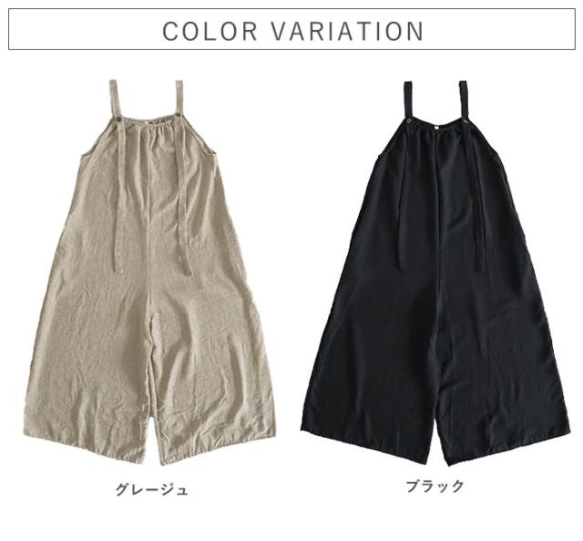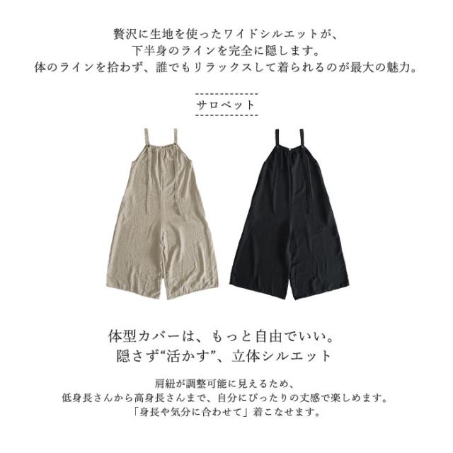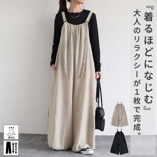サロペット レディース ボトムス パンツ 大きめ ゆったり 麻っぽ 綿混 コットン混 春 夏 黒 おしゃれ [郵3]^b525^