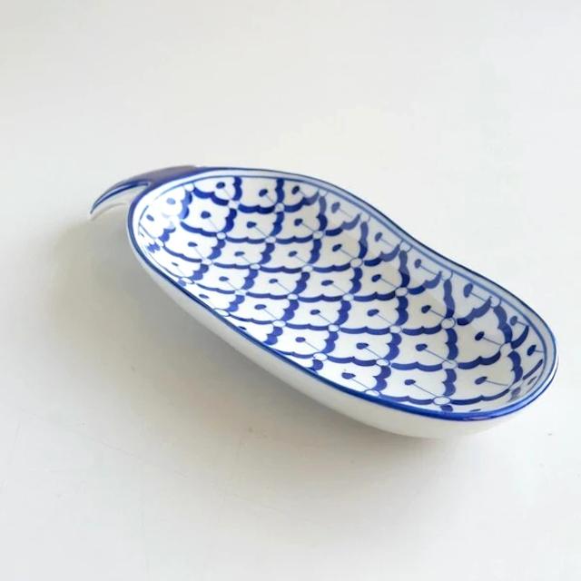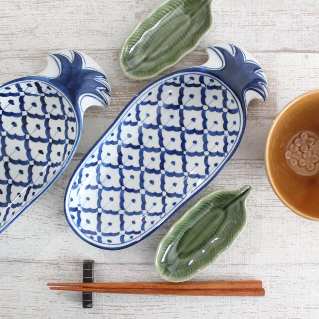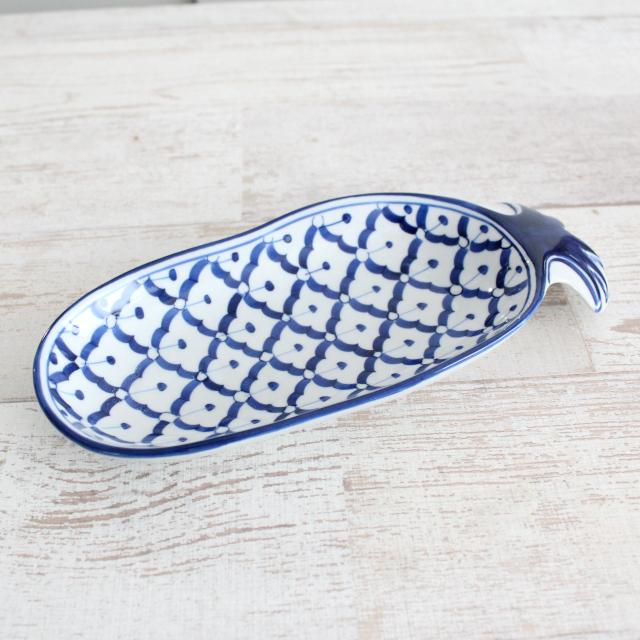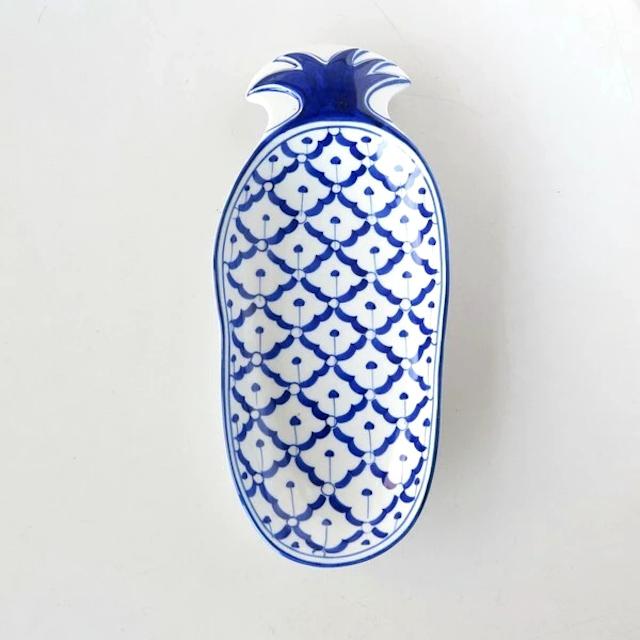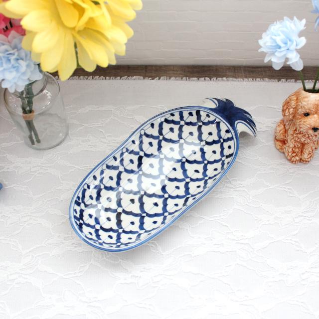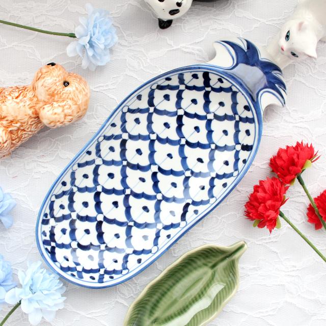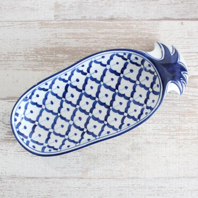 タイ青白陶器 パイナップル皿 TWT-B-014【マライカ MALAIKA 陶器 お皿 食器 プレート ランチプレート アクセサリートレー アクセサリー収納 パイナップル アフタヌーンティー ヌン活 母の日 父の日 敬老の日 クリスマス Xmas】