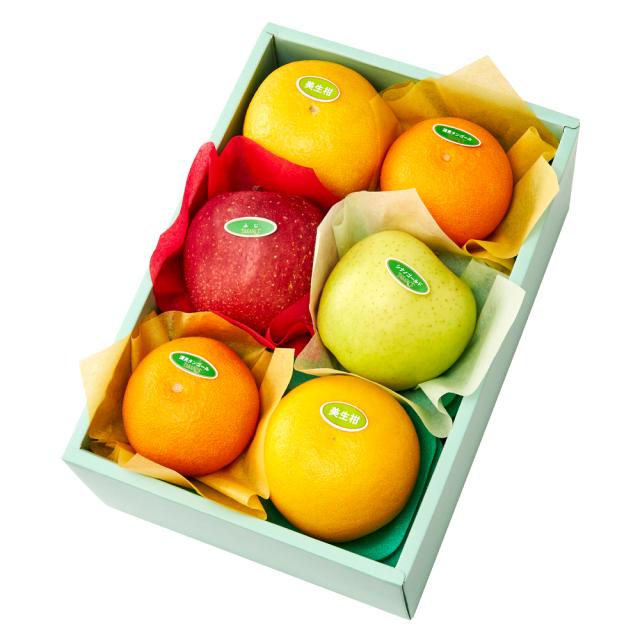 | 内容量 | 清見オレンジ(愛媛県または佐賀県産)、美生柑(愛媛県産)、りんご(青森県または長野県産)×各2 |