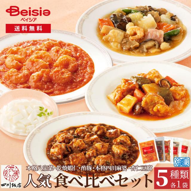 赤坂四川飯店人気食べ比べセット5種各1袋(本格八宝菜・乾焼蝦仁・酢豚・本格四川麻婆・杏仁豆腐) | 食べ比べ 中華料理 冷凍食品 惣菜 簡単調理 時短 赤坂四川飯店 本格 点心 おかず ディナー オードブル パーティー八宝菜 エビチリ 酢豚 麻婆豆腐 杏仁豆腐 セット