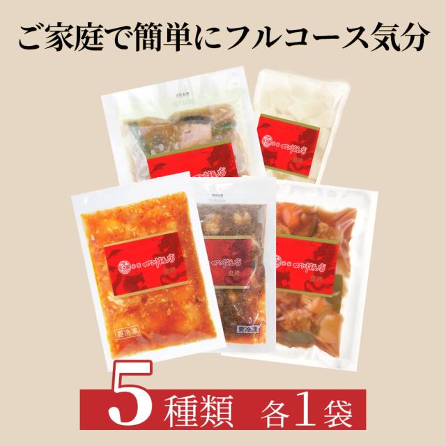 赤坂四川飯店人気食べ比べセット5種各1袋(本格八宝菜・乾焼蝦仁・酢豚・本格四川麻婆・杏仁豆腐)