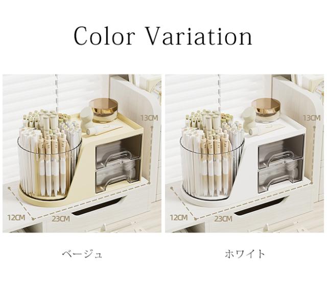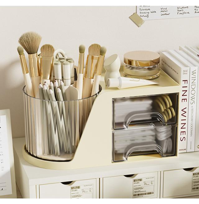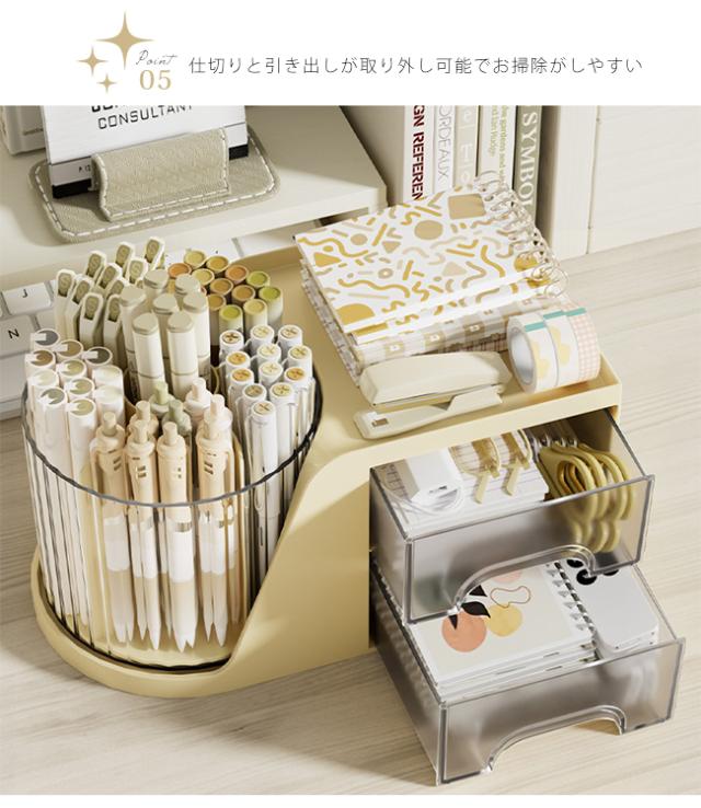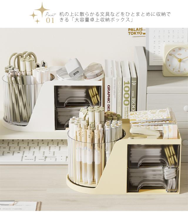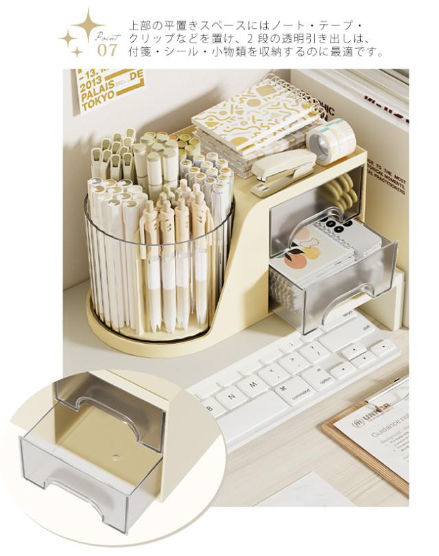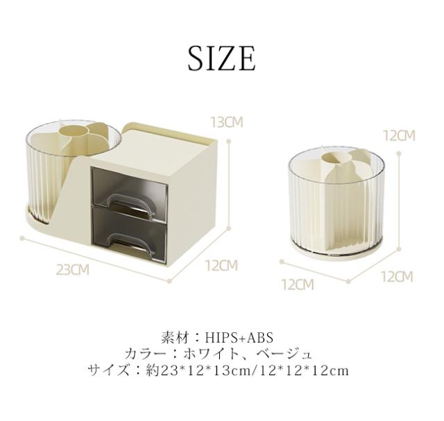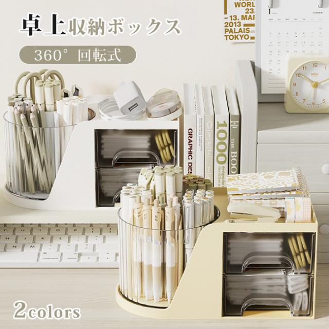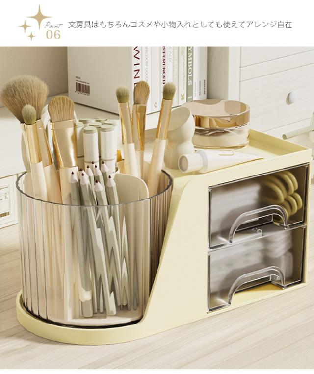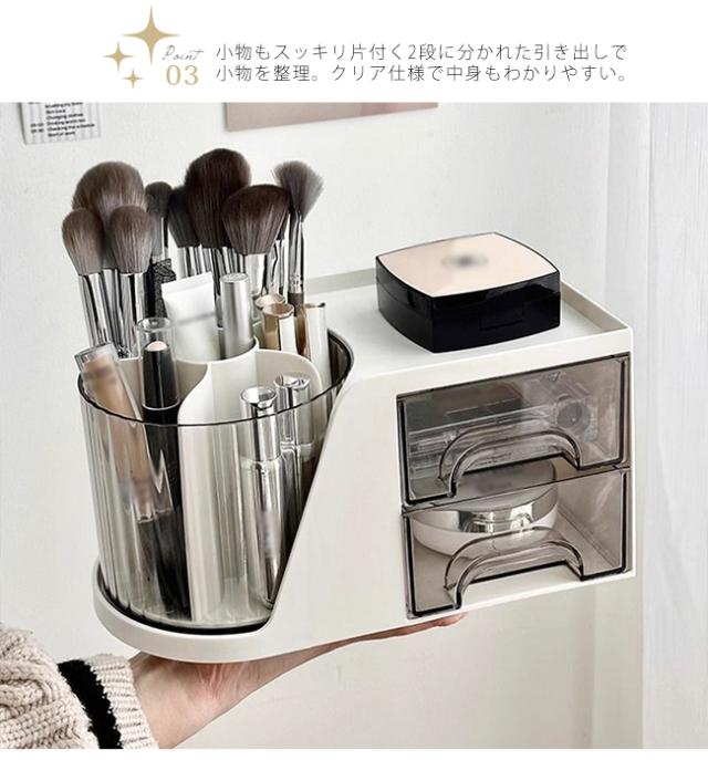 卓上収納 デスクトップ 360° 回転式 引き出し 2 段付き 仕切り式収納 化粧品収納 回転式 メイクブラシ立て 引き出し 大容量 卓上収納 コスメケース おしゃれ 雑貨 インテリア 雑貨収納
