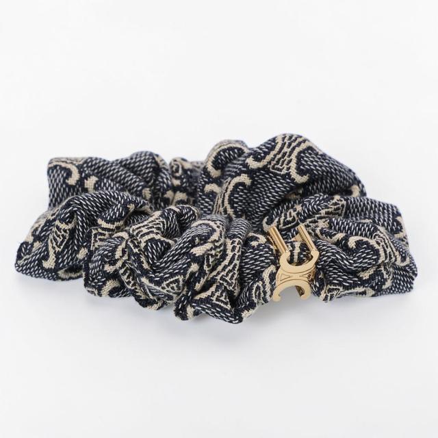 セリーヌ/CELINE ジャカード トリオンフ シュシュ ロゴ刻印・髪留め・ヘアアクセサリー(ネイビー×エクリュ×ゴールド) B103T2U93 GHE4/NAVY*ECRU*GOLD