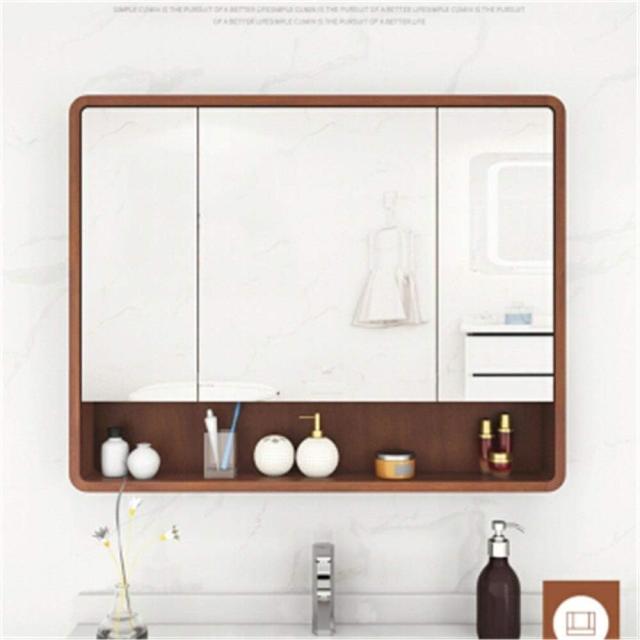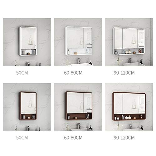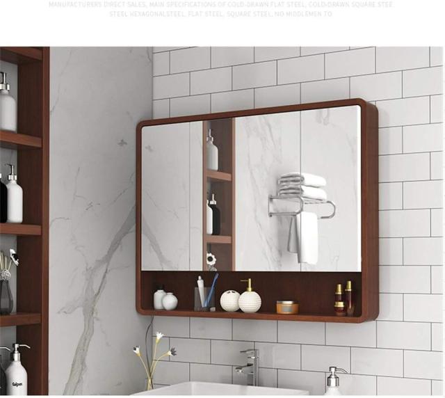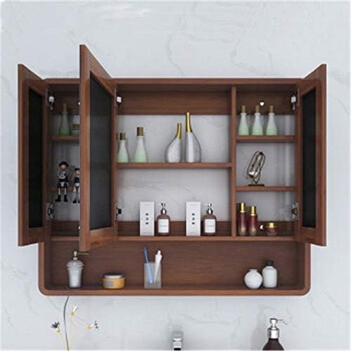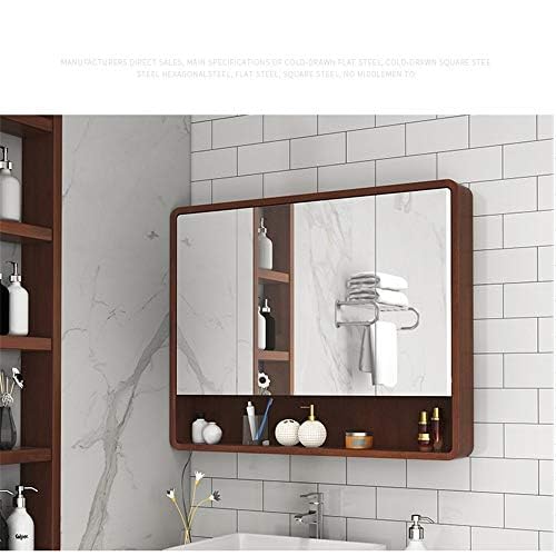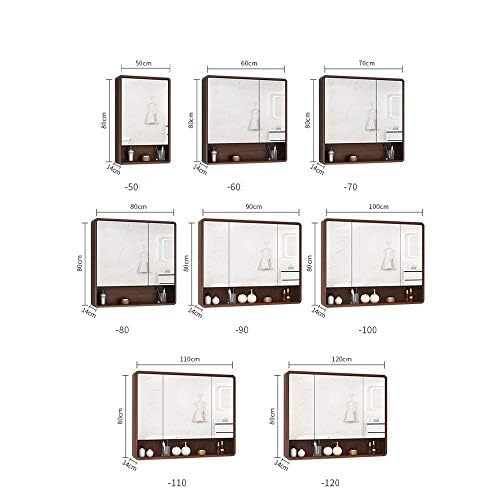 『ポイント4倍!3月限定!』浴室用化粧鏡 洗面化粧台ミラー オーク材のバスルームミラーキャビネット 棚トイレ洗面化粧台収納キャビネット付きダブルドア壁掛け浴室のミラーキャビネットバスルームの化粧鏡 防水でお手入れが簡単 A-ブラウン色 A/110CM