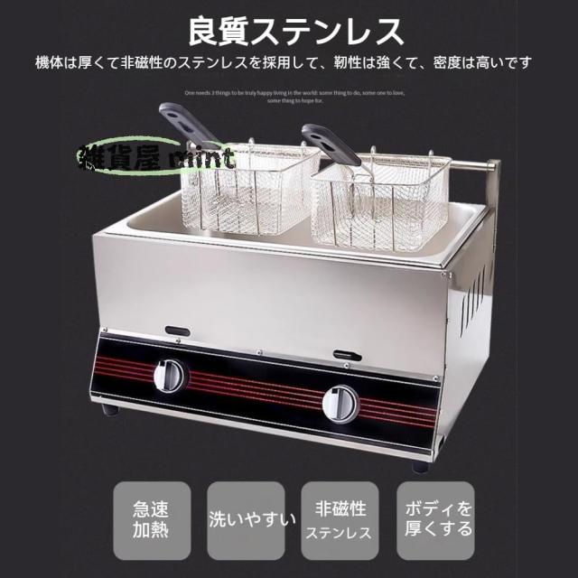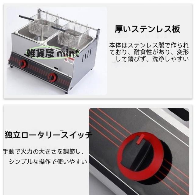 『ポイント2倍!3月限定!』大型 ガスフライヤー 複数仕様ダブルシリンダー フライヤー 揚げバスケット付き 卓上フライヤー 厨房機器 ステンレス鋼 温度調整機能 簡単に掃除できデスクトップフライヤー 揚げ物 フライドポテト、ポップコーン 業務用フライヤー LPガス用 B