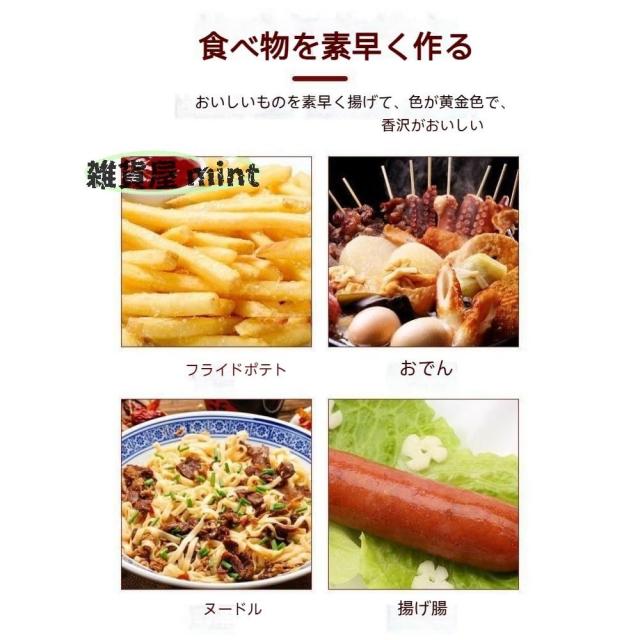 大容量は、複数の人の食品ニーズに簡単に対応し、一度により多くの食品を揚げることができます オススメ 天ぷら、揚げパン、魚フライ、フライキチン、フライボテト、フレンチフライ、フライドチキン、エビフライ、牛乳、オニオンリング、エッグロール、パンコエビ、コロッヶ等の揚げる料理調理に作れます