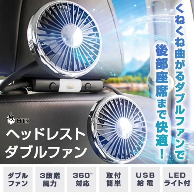 2026 最新モデル カーヘッドレストファン ダブルファン 静音 車用ファン 後部座席用 360° 全方向送風 3 段階風量調整 USB 給電 車内暑さ対策 冷却サーキュレーター