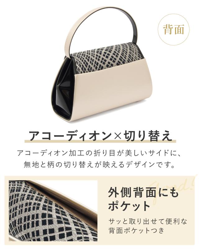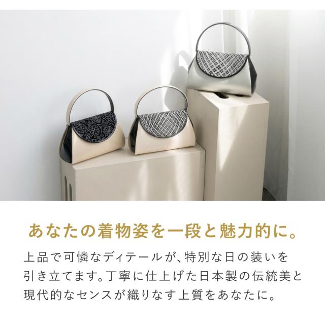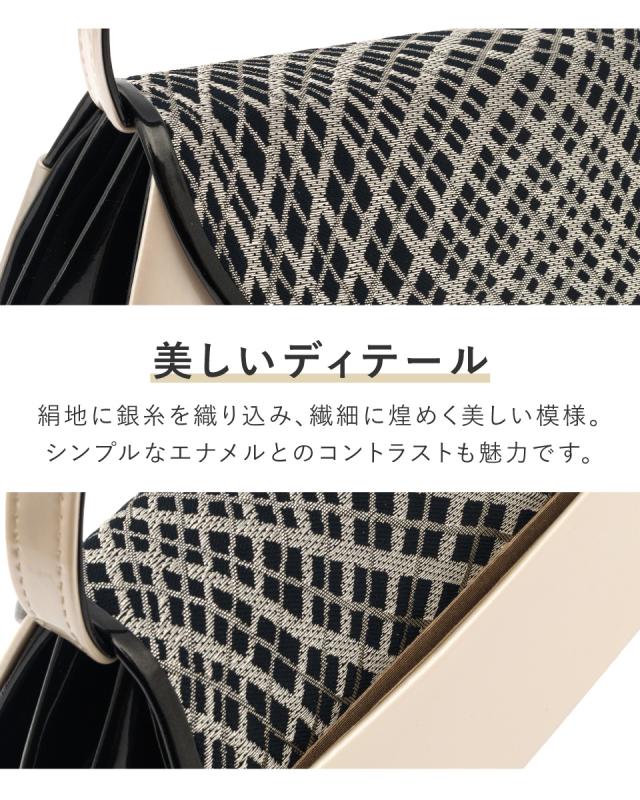 バッグ ハンドバッグ 単品 レディース 成人式 卒業式 振袖 袴 礼装 和装 黒 銀 白 ブラック シルバー クリーム ホワイト 網目 花唐草 ウェーブライン エナメル 絹 シルク フォーマル 和装バッグ 日本製 送料無料