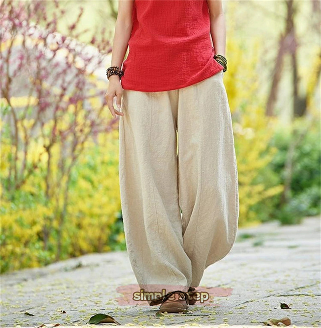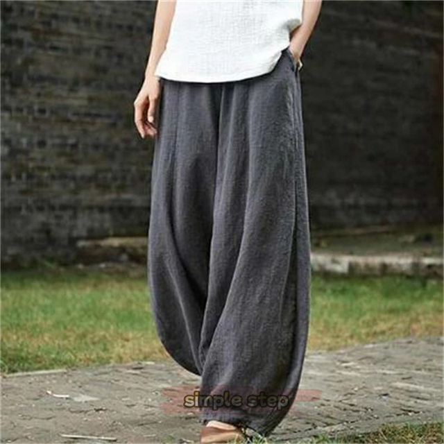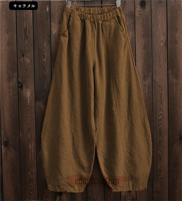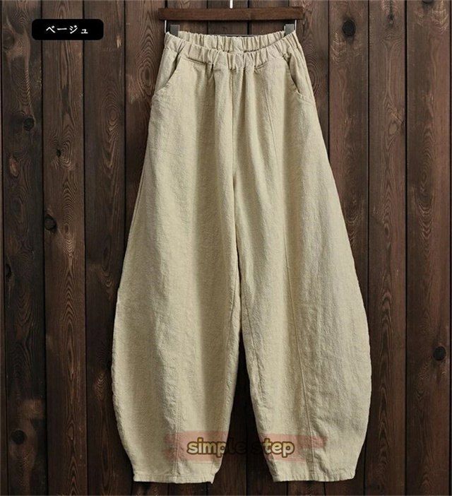綿麻 パンツ レディース バルーン ワイドパンツ リネン 体型カバー サルエルパンツ おしゃれ きれいめ バルーンパンツ ゆったり シルエット ウエストゴム ガウチョパンツ テーパードパンツ カジュアル 快適 ロングパンツ リラックス ナチュラル 軽い 可愛い 春 春服 夏