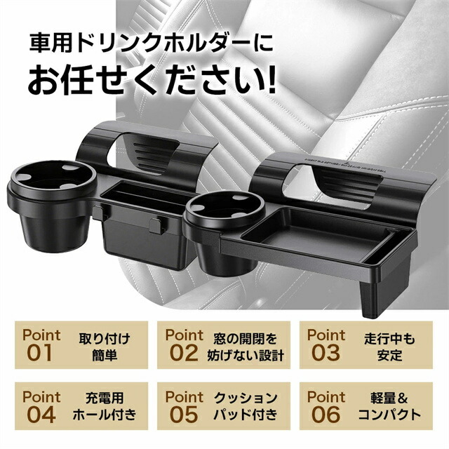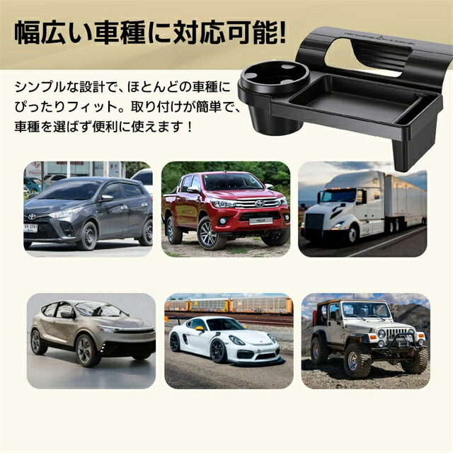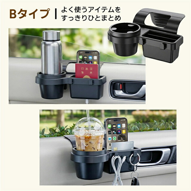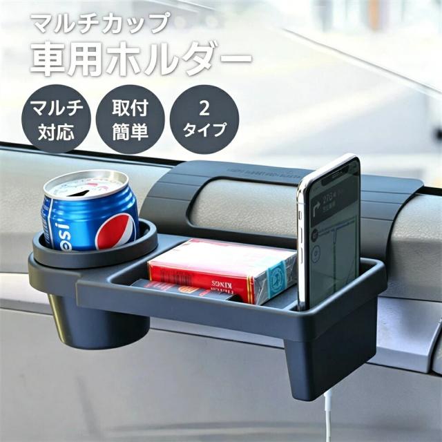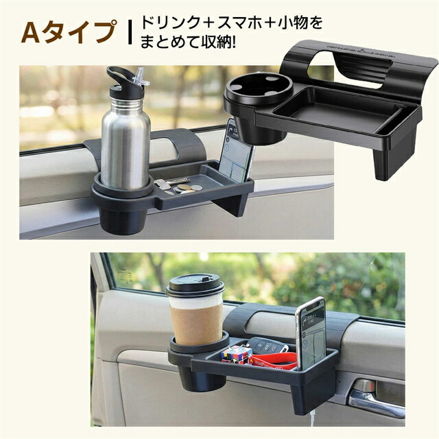 ドリンクホルダー 車 水筒対応 車載 サイドカップホルダー 窓掛けタイプ スマホ収納&充電対応 車内収納ポケット サイド収納ボックス 増設 取付簡単 差し込むだけ 工具不要 後部座席・助手席用 多機能 トレー付き 車用ホルダー
