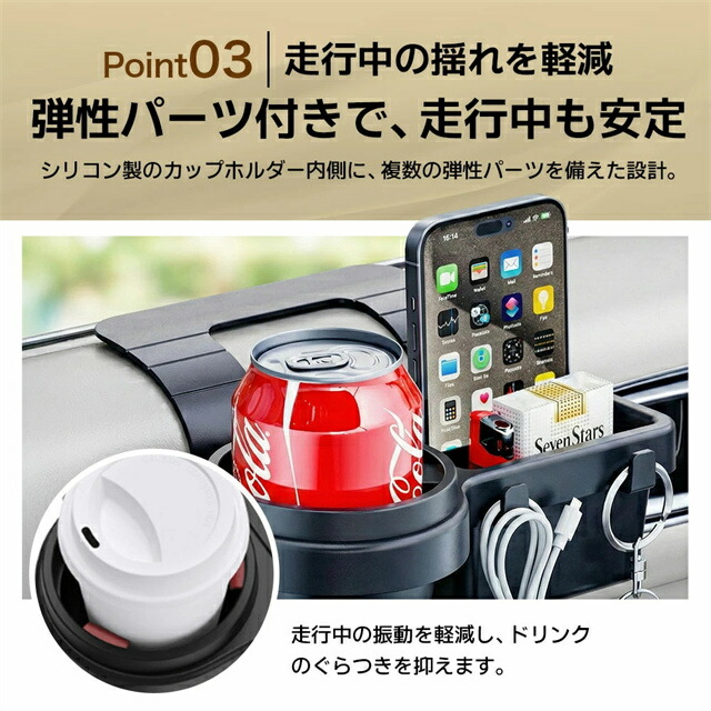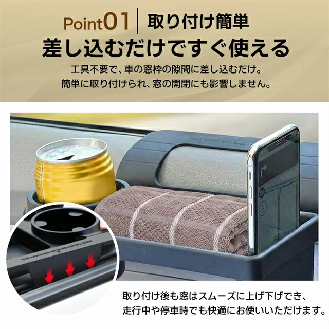 daysunnyの車用ドリンクホルダーは、車の窓枠に差し込むだけで簡単に取り付けできる省スペース設計。ドリンクスマートフォン小物をまとめて収納できます。走行中も安定感があり、運転の邪魔にならない快適な車内環境をサポートします。