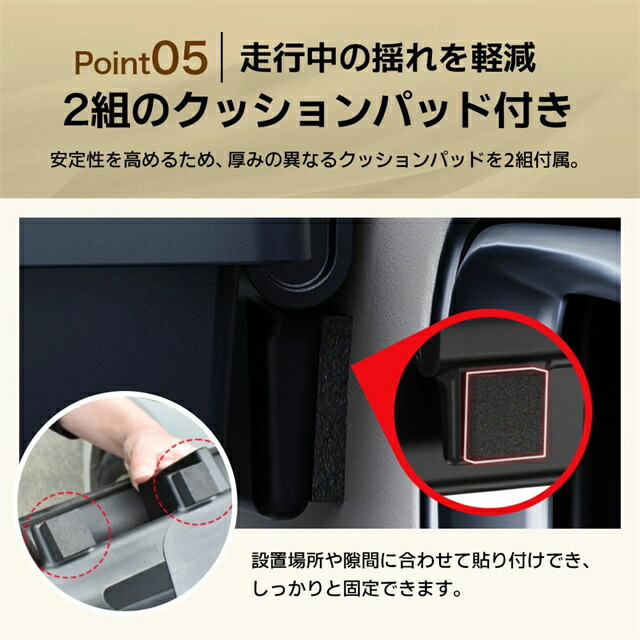 設置後も車窓の上げ下げがスムーズ。走行中や停車中でもストレスなく使用できます。日常使いから長距離ドライブまでおすすめです。【ポイント3】走行中も安定するクッション構造