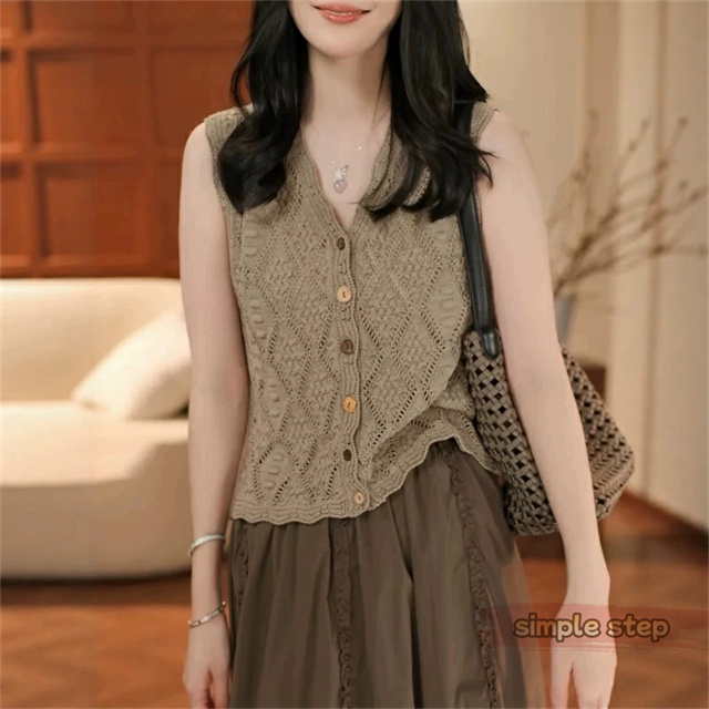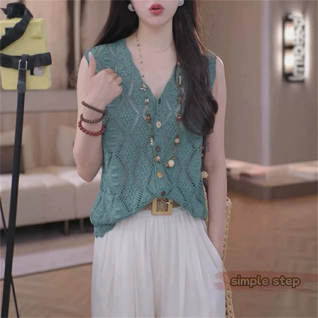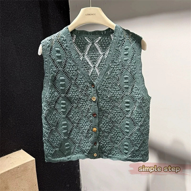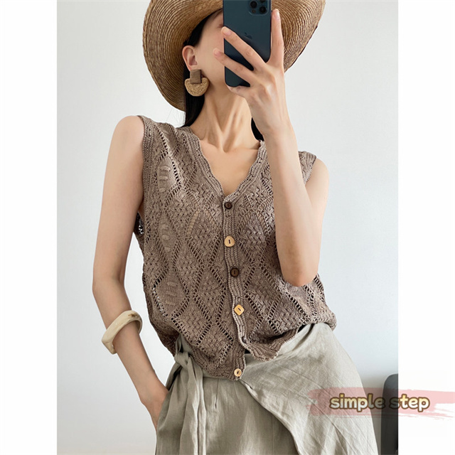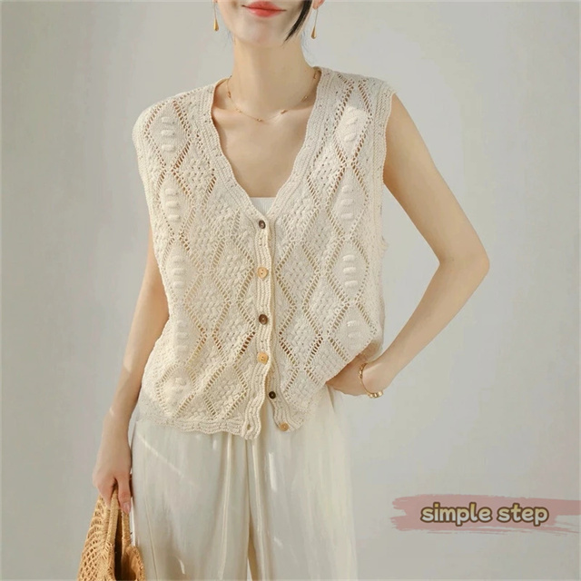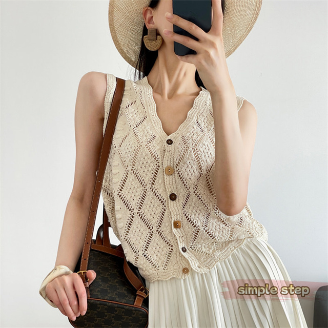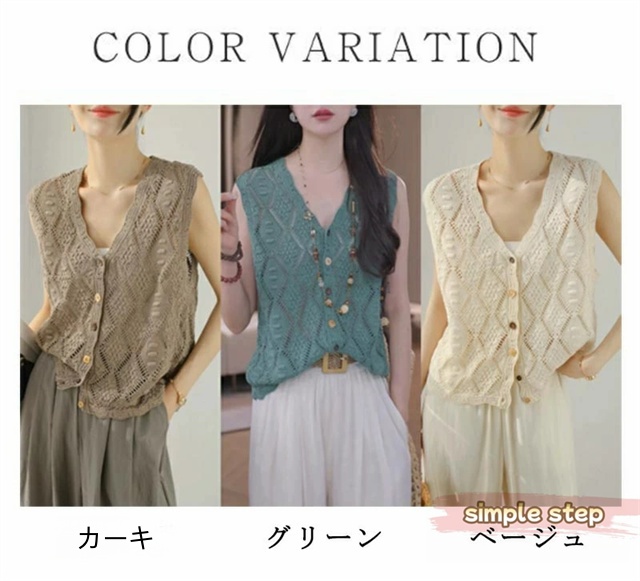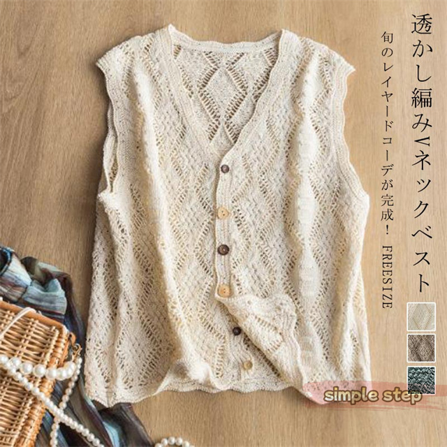 ベスト 透かし編み レディース 前開き 春夏 トップス サマーニット 可愛い 春 夏 トップス Vネック ジレ かぎ編み 無地 春ベスト 体型カバー ノースリーブ レイヤード シンプル きれいめ 重ね着 夏ジレ ニットベスト フェミニン 大人 かわいい 大きいサイズ 着回し 通勤 通学