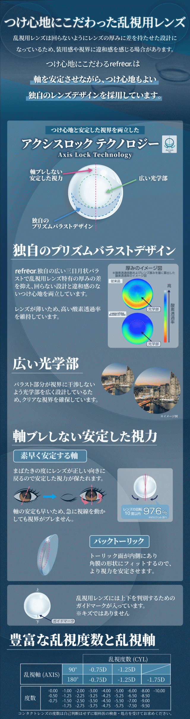 ※-1.75は乱視軸180°のみ