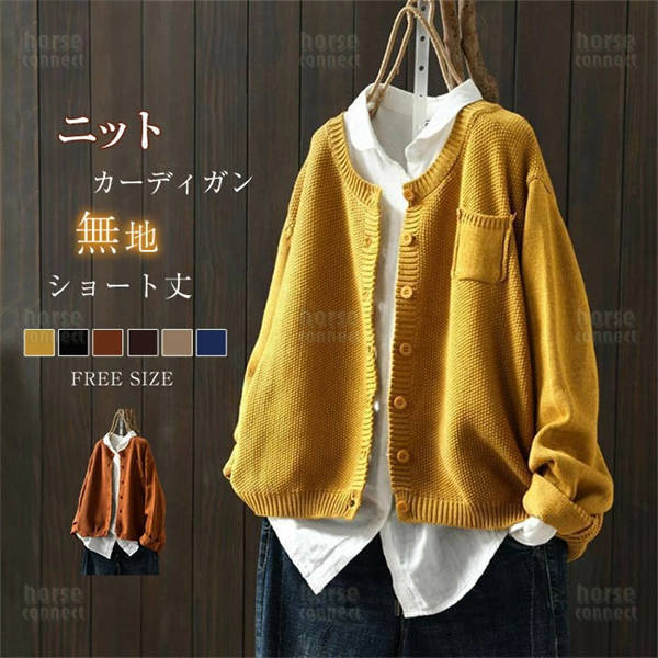 ニットカーディガン 長袖 レディース ニット カーディガン カーデ 前開き クルーネック トップス ゆったり ナチュラル ニットカーデ 羽織り 上着 キレイめ カジュアル 大人 可愛い おしゃれ 森ガール 春 秋