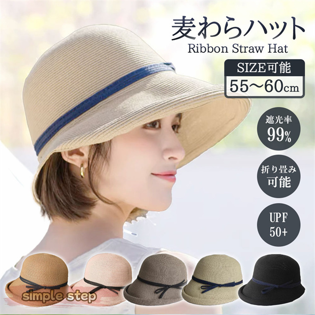 麦わらハット 帽子 レディース 【頭囲55〜60cm調節】麦わら帽子 ストローハット ペーパー 春夏 大きめ 遮光 夏 バケットハット 麦わら つば広 UV リボン 日よけ 海 ビーチ 水着コーデ 大きい 旅行