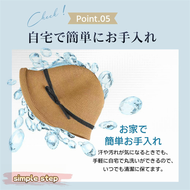 広いつばが顔まわりから首元までしっかりガードし、強い日差しや紫外線をブロック。UVカット効果で日焼けを防ぎ、夏のお出かけやガーデニングにも最適です。