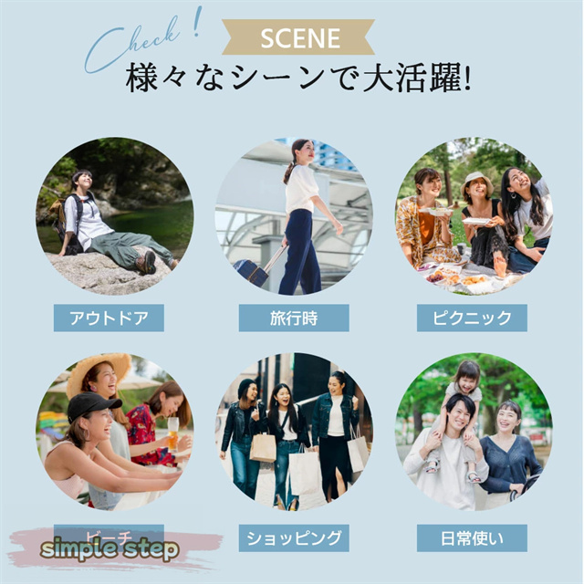 やわらかい素材でコンパクトに折りたたみ可能。バッグやスーツケースにも簡単に収納できるので、旅行やレジャーの持ち運びにもぴったりです。