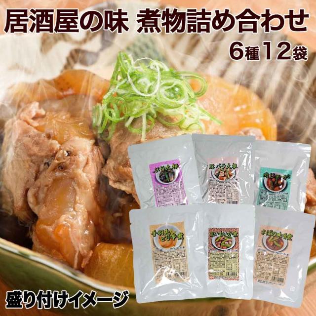 居酒屋 煮物 12袋 6種から選べる 送料無料 レトルト 惣菜 常温保存 和食 おかず おつまみ ぶり大根 豚バラ大根 肉じゃが 鯖味噌 里芋いか煮 手羽先ピリ辛