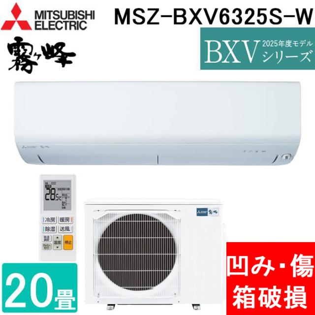 (箱破損 へこみ 傷あり) 三菱電機 MSZ-BXV6325S-W ルームエアコン 霧ヶ峰 BXVシリーズ 冷暖房とも主に20畳 ピュアホワイト 単相200V リモコン付 2025年モデル クーラー 冷房 暖房 日本製 MITSUBISHI
