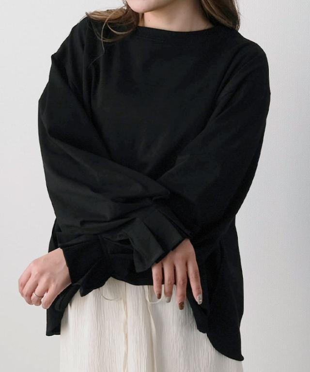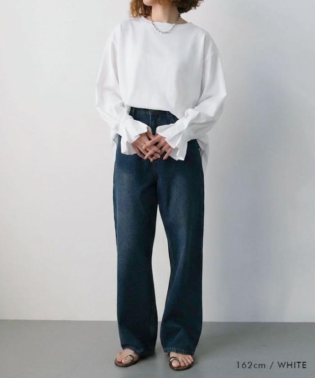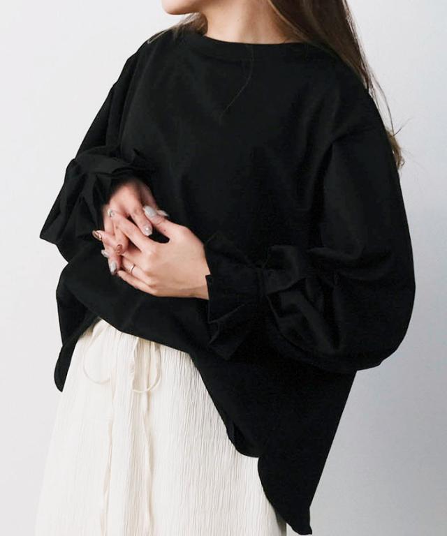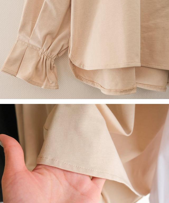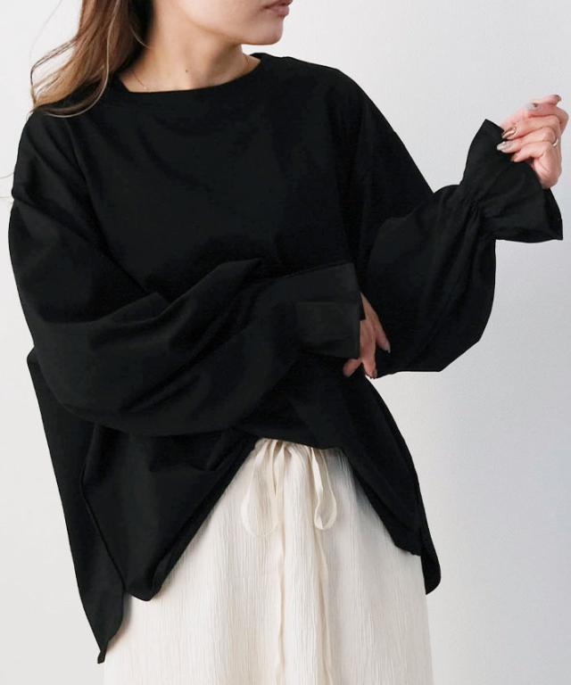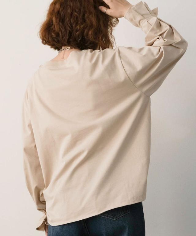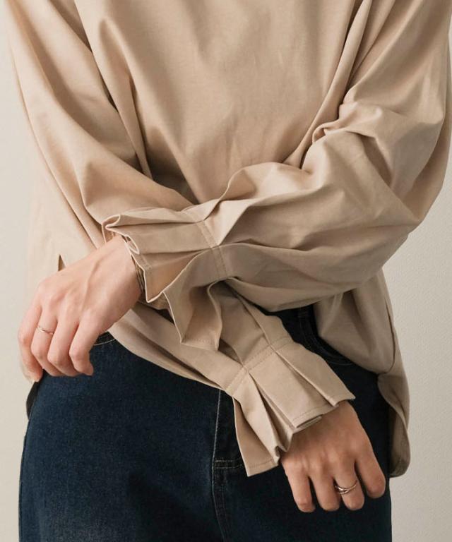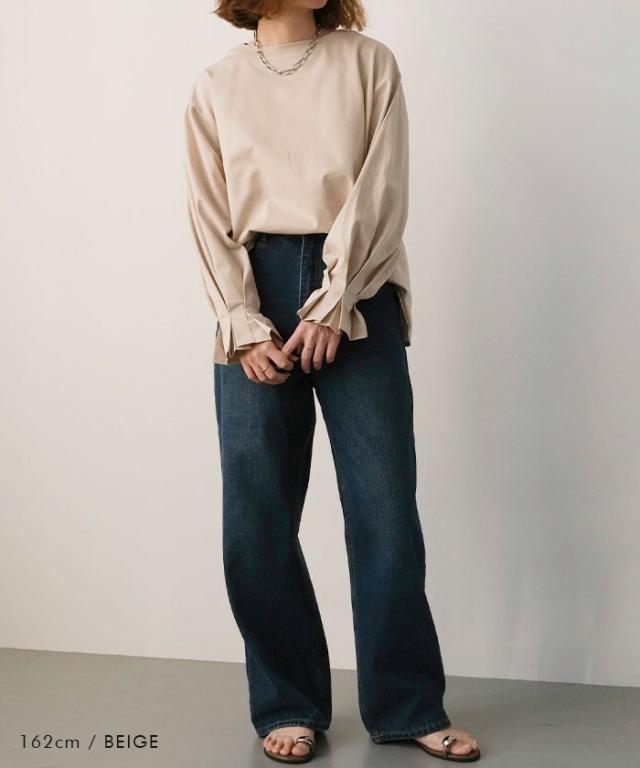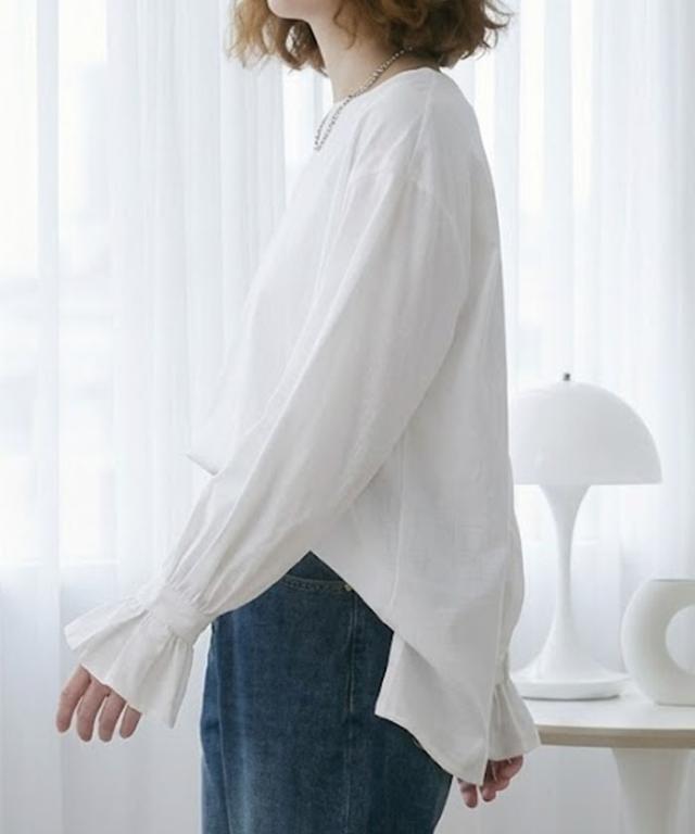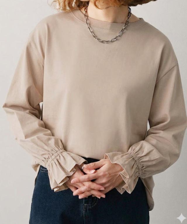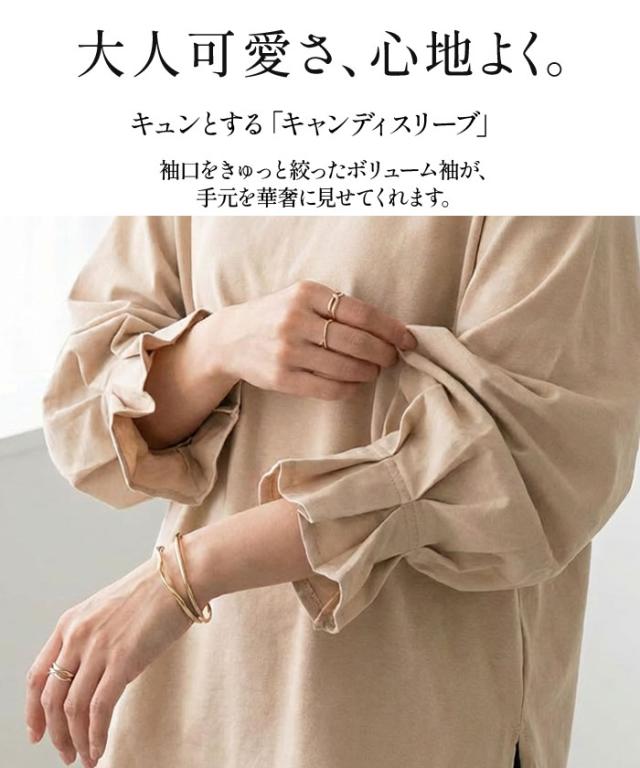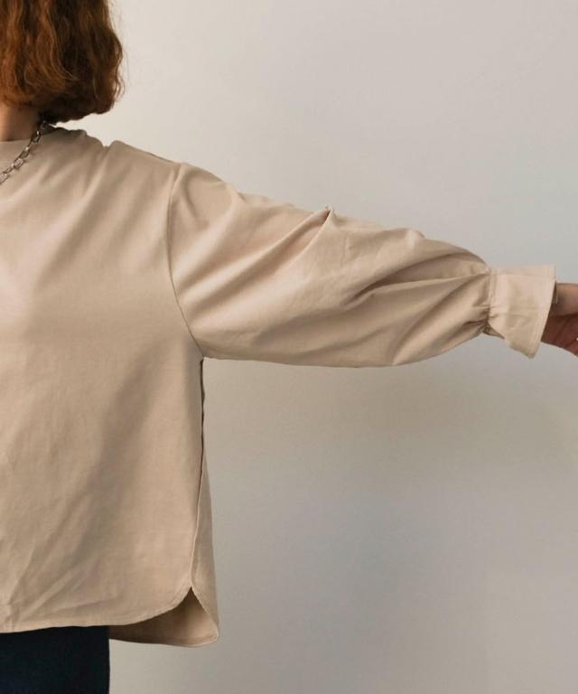 ■point ・キャンディスリーブ ・袖コンシャスデザイン ・フェミニンシルエット ・コットン100%で肌触りが良い ■detail ふんわりと丸みを帯びたキャンディスリーブが印象的なトップス。 袖口に向かってきゅっと絞られたデザインが手元を華奢に見せ、女性らしいメリハリを演出します。 身頃はシンプルで程よくゆとりのあるシルエットに仕上げており、甘くなりすぎず大人っぽく着こなせるのが魅力。 気になる二の腕をさりげなくカバーしてくれるのも嬉しいポイントです。 首元はすっきりとしたデザインで、アクセサリーとの相性も良く、オンオフ問わず活躍。 1枚で着映えするため、忙しい朝でもコーディネートが簡単に決まります。 ボトムスにインしてもアウトでもバランスよく着られる丈感で、着回し力の高さも魅力のひとつです。